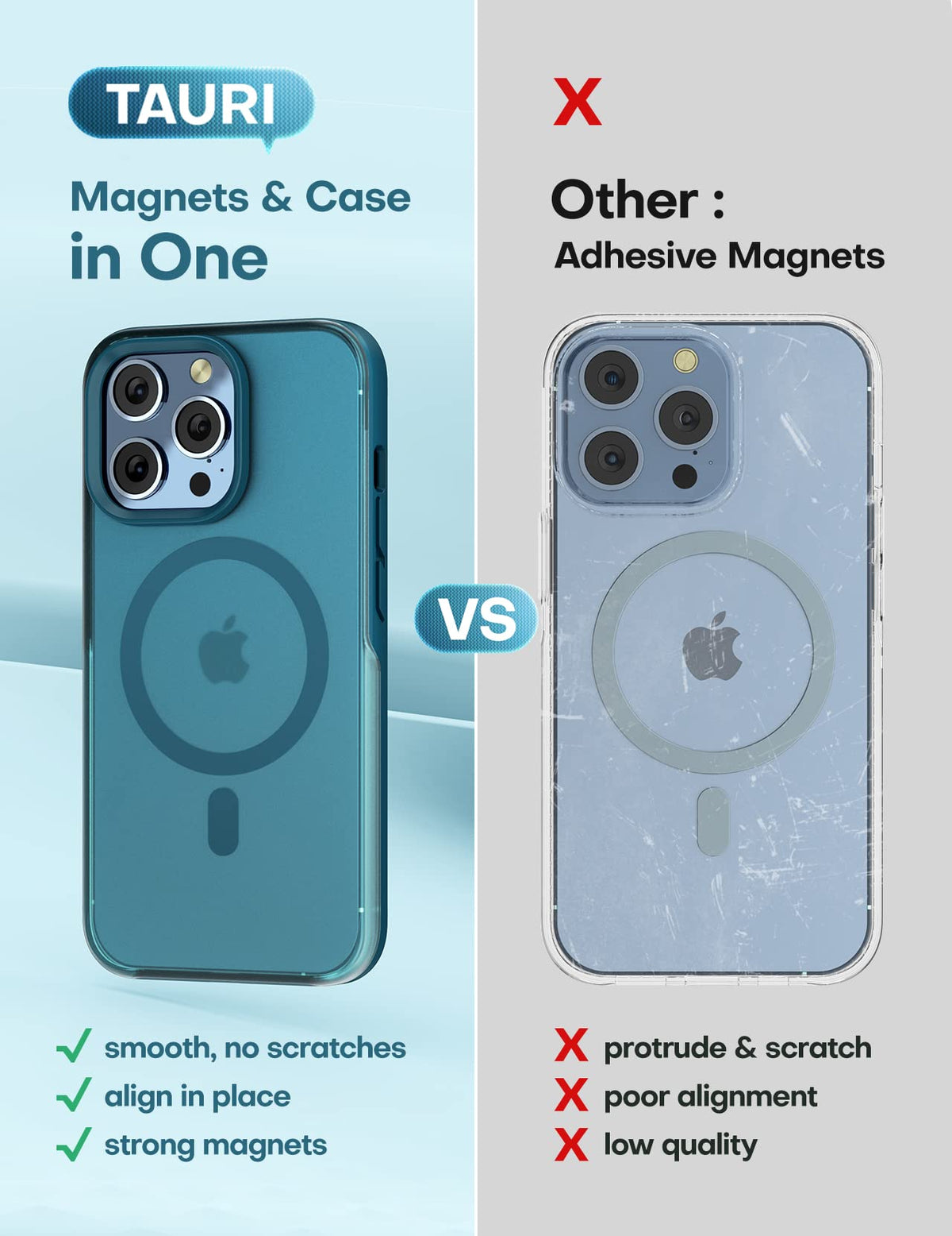 Tauri Magnetic For Iphone 13 Pro Max Case Deep Blue, [Compatible With Magsafe] [Not Yellowing] With 2X Screen Protector +2X Camera Lens Protector, Slim Shockproof Phone Case For Iphone 13 Pro Max