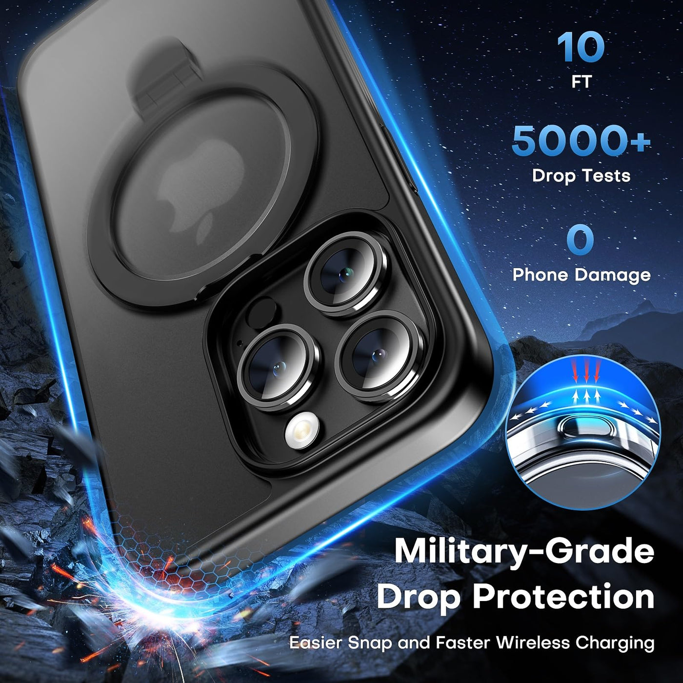 Tauri Magnetic For Iphone 14 Pro Max Case Black, [Designed For Magsafe] With Stand & Ring Holder, Translucent Matte Phone Case