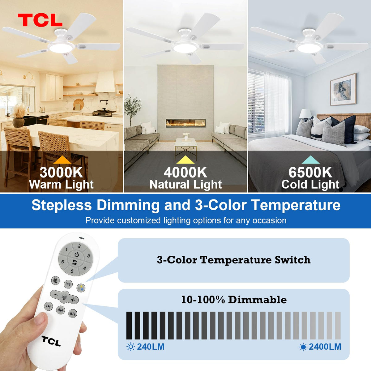 Tcl Ceiling Fans With Lights, 52 Inch Low Profile Ceiling Fan With Light And Remote Control, Flush Mount, Dc Reversible Motor, N