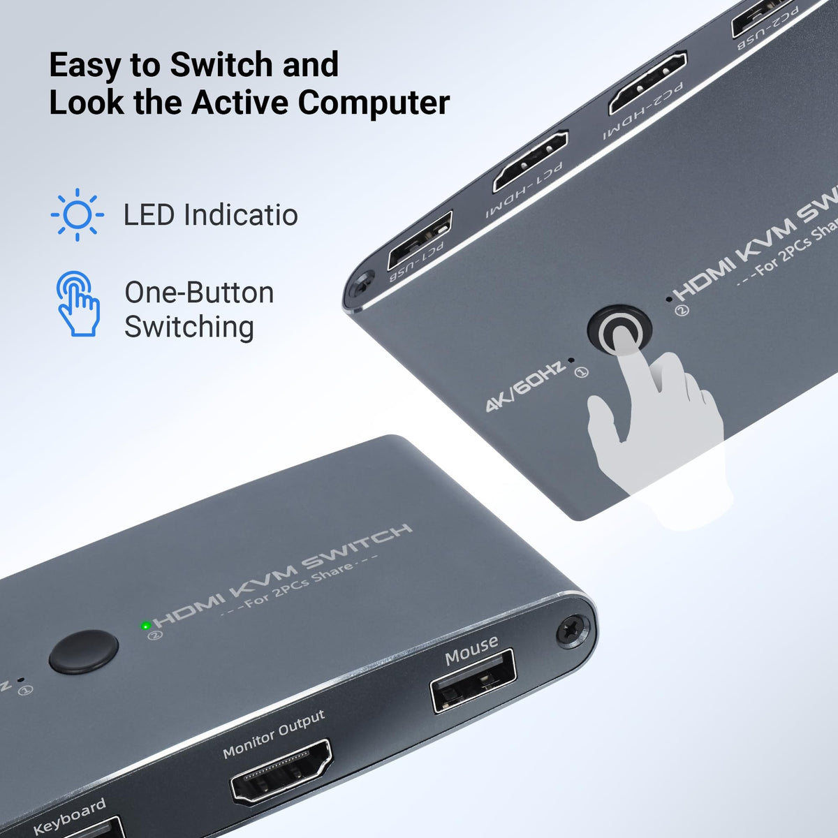 ?Usb Hdmi Kvm Switch?Tcnewcl Hdmi Usb Kvm Switch Allows You To Control 2 Computers And Share 1 Monitor With 1 Set Of Usb Devices (Monitor, Mouse, U-Disk, Keyboard And Printer). | ?Ultra High Definition 4K@60Hz?This Kvm Switch Supports Ultra High Definition And High Resolution 4K@60Hz. With Beautiful Images, The Best Colors, And Exquisite Realistic Display Images To Bring You A Visual Feast. | ?Great Compatibility?Usb Switcher 2 Computers Is Highly Compatible With Windows 11/10/8/8.1/7/Vista/Xp, Mac Os, Linux, Dos And Other Operating Systems. No Driver Is Required. | ?Easily & Widely Applied? You Can Quickly Switch Between The Two Computers By Simply Pressing The Switch Button, Which Makes Your Work And Life Convenient And Efficient. Perfect Gift For Business, Office, Multimedia Classroom, Conference Room, Game Room, Home Cinema, Research Test, Etc. | ?Plug And Play?No External Power Adapter Is Required. Package Include 2 Hdmi Cables And 2 Usb 2.0 Cables. What You Need To Do Is Just To Connect Between The Kvm Switch And Your Computer/Laptop And Enjoy Work And Life More Easily And Conveniently.