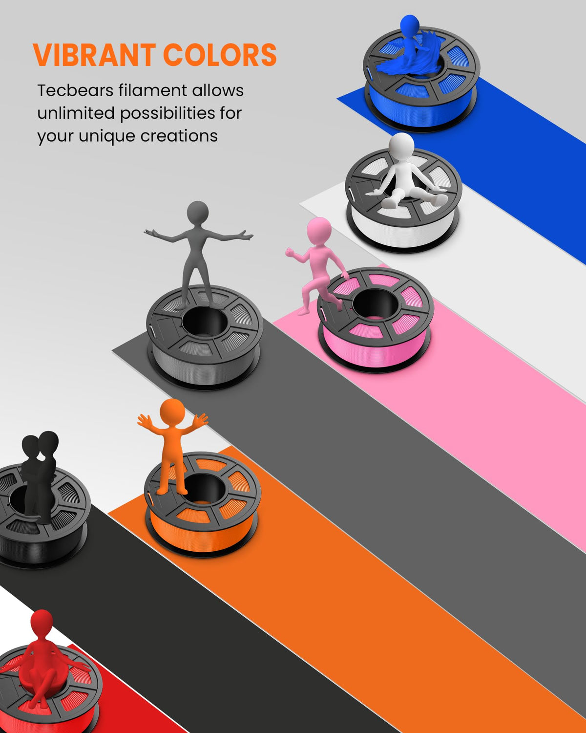 Tecbears Pla 3D Printer Filament, Pla Filament 1.75Mm, Neatly Wound 3D Printing Filament, Dimensional Accuracy +/- 0.02 Mm, 1Kg