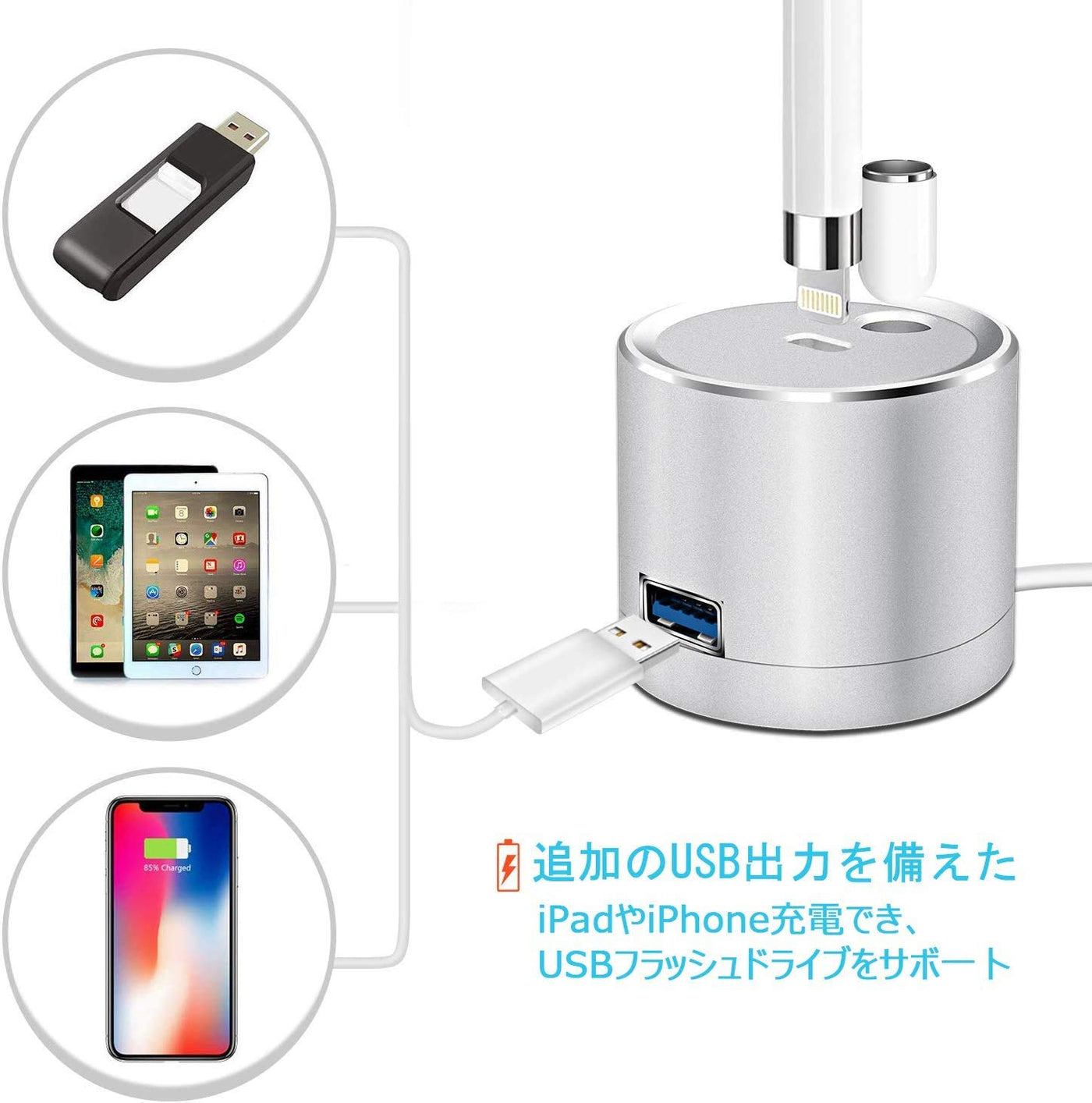 Introducingtechmatte Charging Dock/Stand For Apple Pencil (Walladapter Not Included)The Techmatte Charging Dock/Stand For Apple Pencil Allows You To Place Your Apple Pencil Into A Stylish Aluminum Holder. Charge Your Pencil On Our Sleek Charger Rather Than Having Messy Cables Cluttering Your Desk.Compatible With:Ipad Pro 9.7, 10.5, 12.9, 10.2Apple Pencilproduct Notes:-Remove Your Pencil Cap And Place The Pencil Down Into Theconnector Portion Of The Stand.-Place Your Cap Into The Cap Holder Section Of The Stand-When Fully Charged And Not In Use Place The Pencil Into Thecap Hold Of The Stand Until You Are Ready For Further Usedimensions:1.5 Width; 1.5 Lengthmount Weight:4.2 Oz.Color:Aluminum Whats In The Box?1X Techmatte Charging Dock/Stand For Apple Pencilwarranty: 30-Day Money Back Guarantee12-Month Replacement Warranty