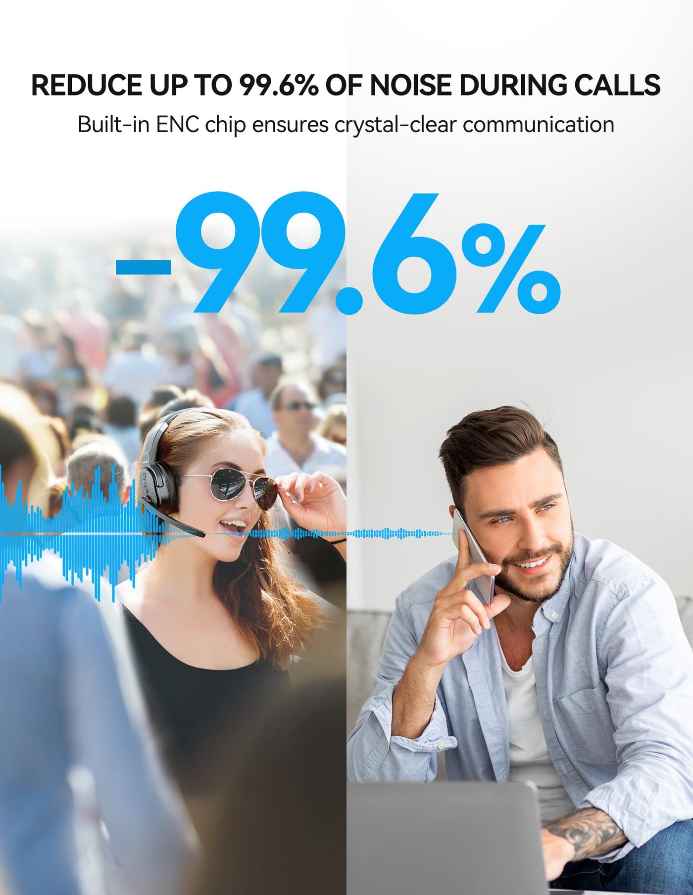 Q: How does the noise cancellation work on this headset?A: The TECKNET Bluetooth Headset utilizes advanced noise cancellation technology to ensure clear voice transmission by significantly reducing background noise. This makes it ideal for use in noisy environments such as call centers, truck driving, and construction sites.