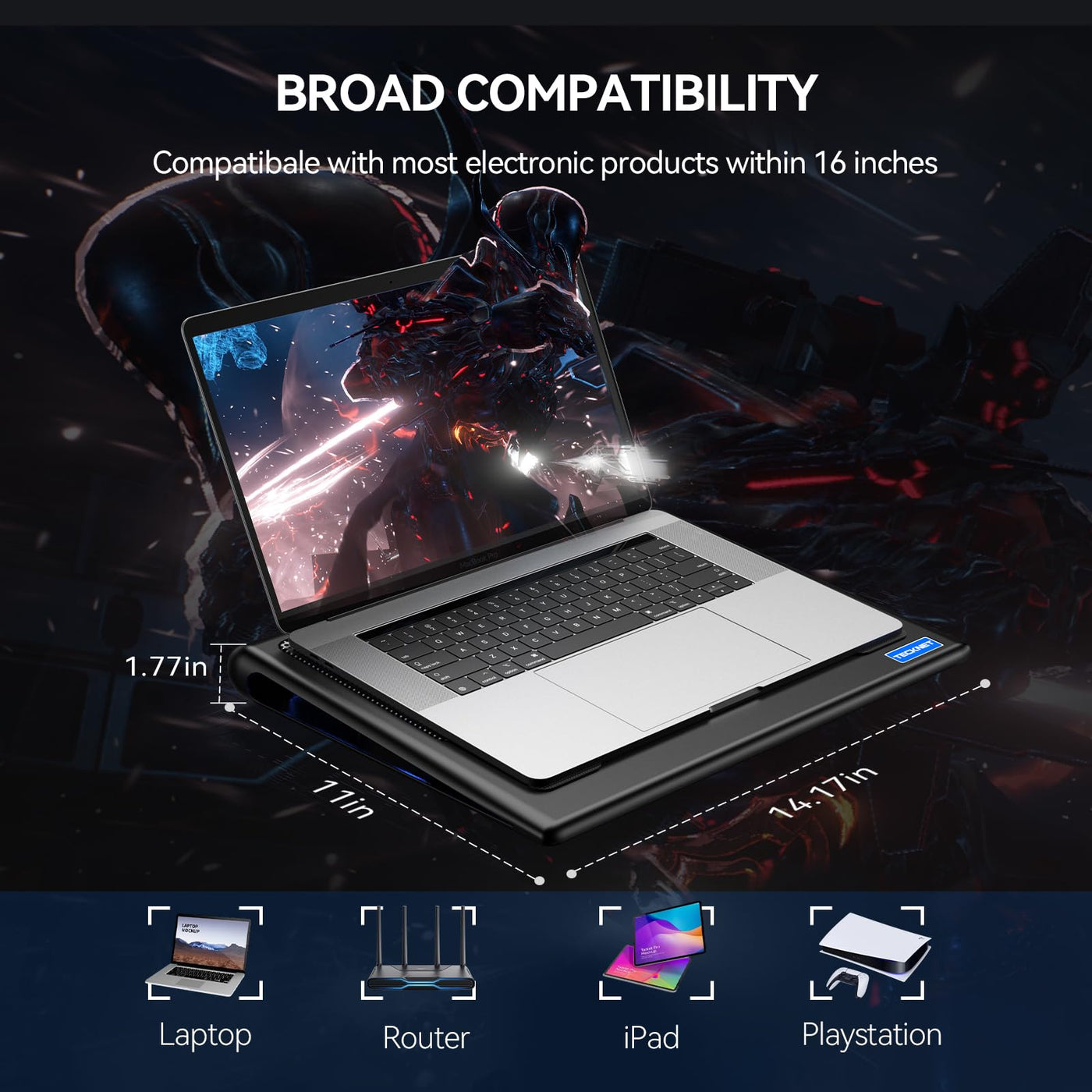 Adjustable Wind Speed Fans: Tecknet Laptop Cooling Pad With Two 110Mm Adjustable Strong Fans And Metal Mesh; Side Switch Allows Free Control Of The Wind Speed From 0 To Maximum. The Lowest Wind Speed Is Enough For Your Normal Use With Less Noise. The Maximum Wind Effectively Prevents Heat Buildup In Intense Gaming | Ultra Portable Laptop Cooler: Slim, Portable And Lightweight, Easy To Take Away; Blue Rear Led Indicator Helps To Notice The Active Status Of The Pad | Extra Usb Ports: You Can Choose A Usb A Or Usb C Port To Power The Laptop According To Your Needs (A-A Cable Included), Another Usb Port For You To Power Low Current Products Such As Smart Watches, Compact Fans, And So On | Ergonomic Comfort: A Laptop Lap Pad With A Flat Bottom Fits Nicely On Your Lap And Isolates Heat Between Your Computer And Lap. Ergonomic Design Provides A Comfortable User Experience | Wide Application: Laptop Fan Cooling Pad Provides Optimal Airflow To Help Keep Your Device( Laptop, Notebook, Netbook, Ultrabook, Or Apple Mac Bookpro) Cool Quickly And Avoids Overheating During A Long Period Of Use. Compatible With Various Laptop Sizes 12/13/14/15/15.6/16 Inches, Such As Apple Macbook Pro, Air, Hp, Alienware, Dell, Lenovo, Asus, Etc