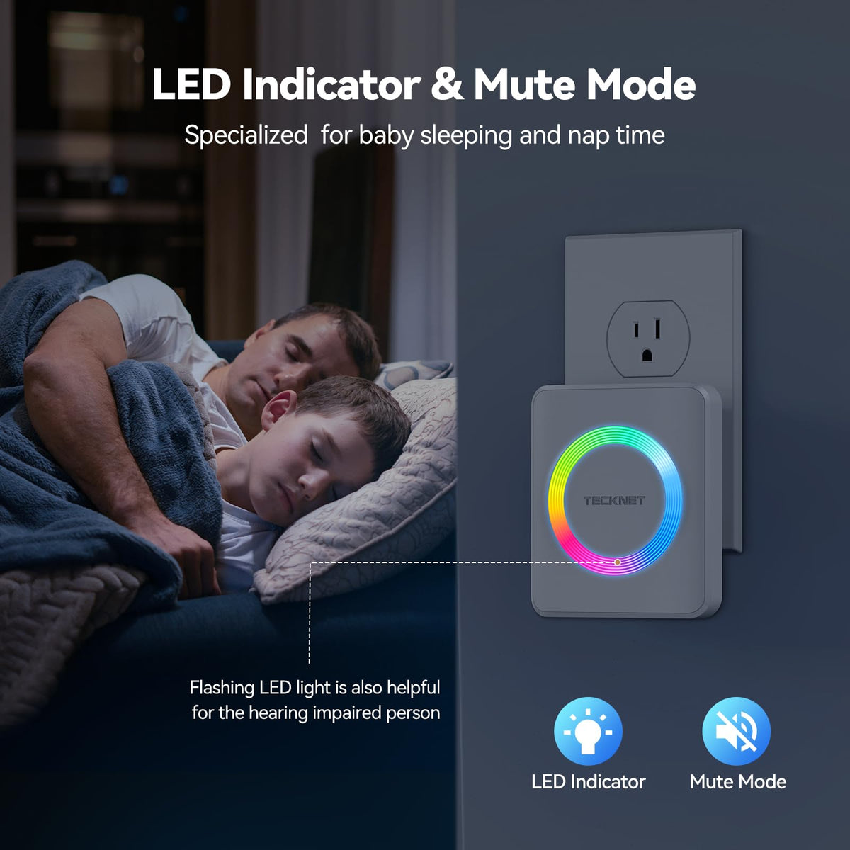 Q: What are the working modes available on the TECKNET Wireless Doorbell?A: This doorbell provides three working modes: LED light flashing mode, ringing mode, and a combination of both ringing and LED light mode, allowing customization for different occasions.