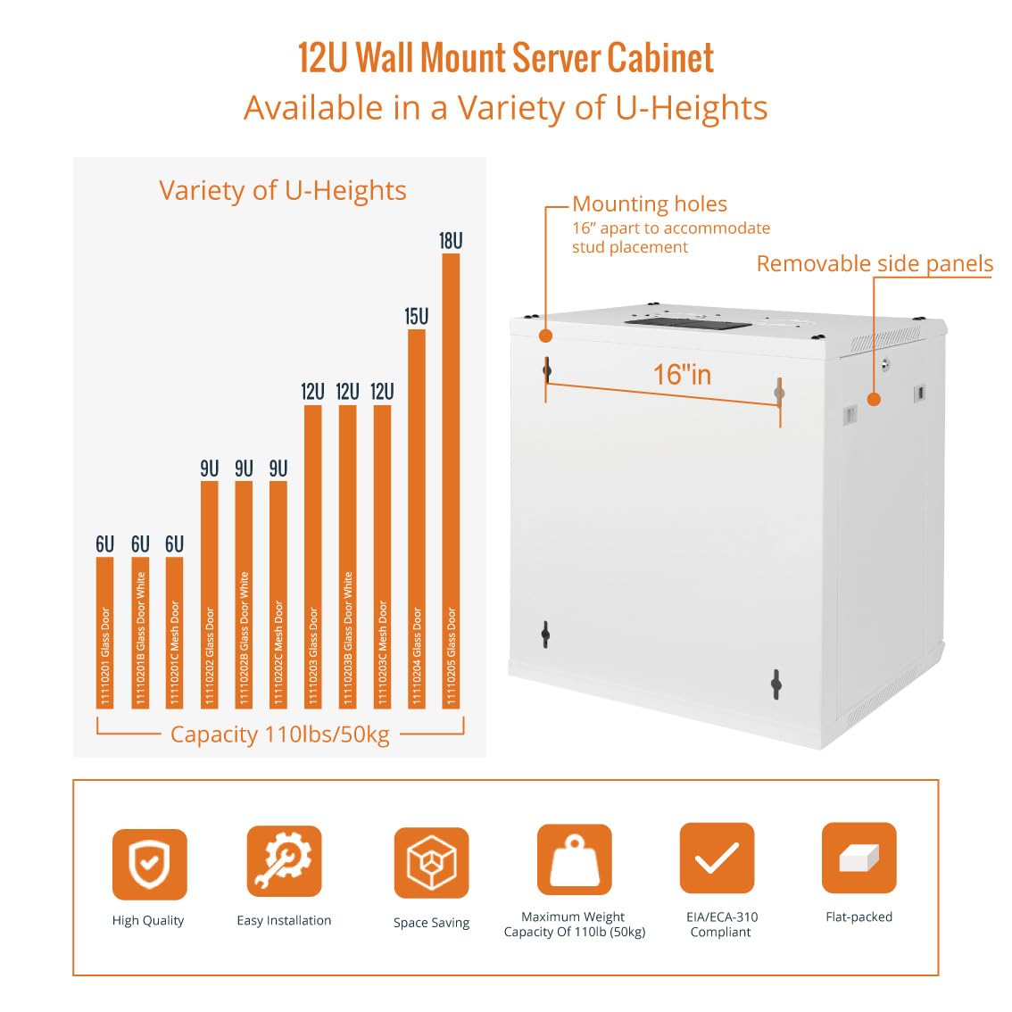 Tecmojo Standard Series Wall-Mount Cabinets Are Designed To House, Secure And Organize The Eia-Standard 19-Inch Rack Devices In Classrooms, Retail Environment, Offices, And Other Locations With Limited Floor Space. The Frame Is Made From High Quality Cold Rolled Steel With Maximum Weight Capacity Of 110Lb. The Reinforced, Heat-Treated, Tempered Glass Front Door Presents A Clean Look And Easy Monitoring Of The Indicator Lights On Your Devices. Sturdy Electro-Static Powder Coating Provides Exceptional Durability On The Finish And Can Resist Conditions Found In Non-It Environments Such As Warehouses And Other Retail Locations. The Enclosure Is Pci & Hippa Compliant With Locking Door And Side Panel To Protect Your Critical Network Equipment And Help Prevent Unauthorized Access. Front Door Can Be Installed On Either Side Of The Front Cabinet To Satisfy Your Door Swing Orientation Preference. This Unit Comes Flat Packed With Hardware For Wall And Equipment Mounting. Easy Assembly Is Required. Available In 6U, 9U & 12U Configurations.