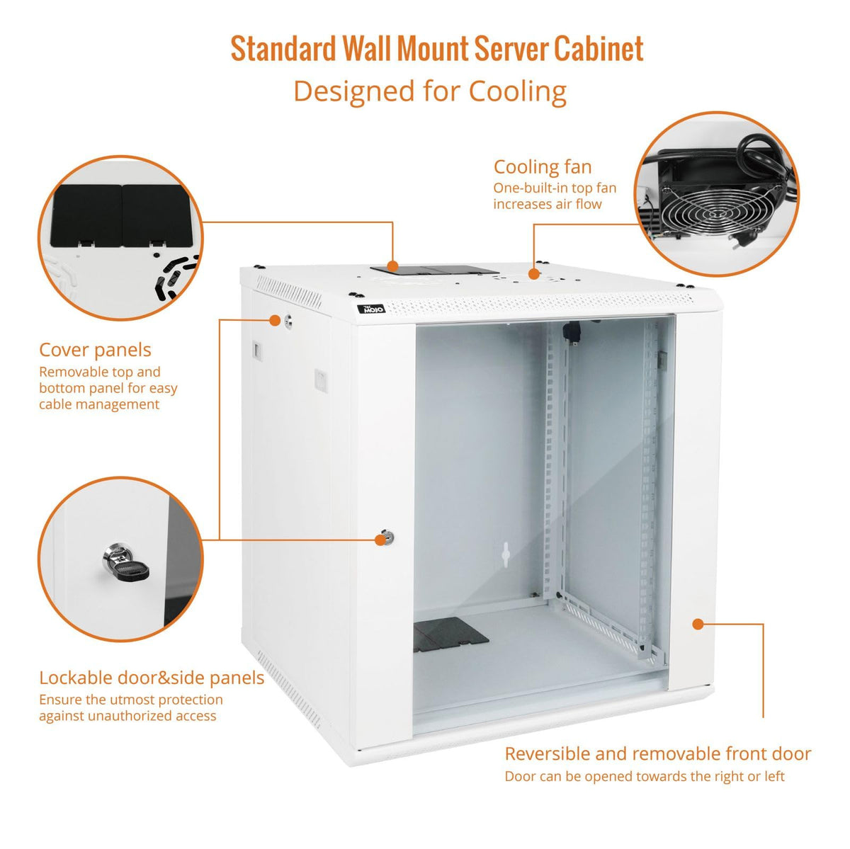 Tecmojo 12U Wall Mount Rack Network Cabinet For 19'' It Equipment,With Lockable Glass Door And Side Panels,Cooling Fan,17.7Inch