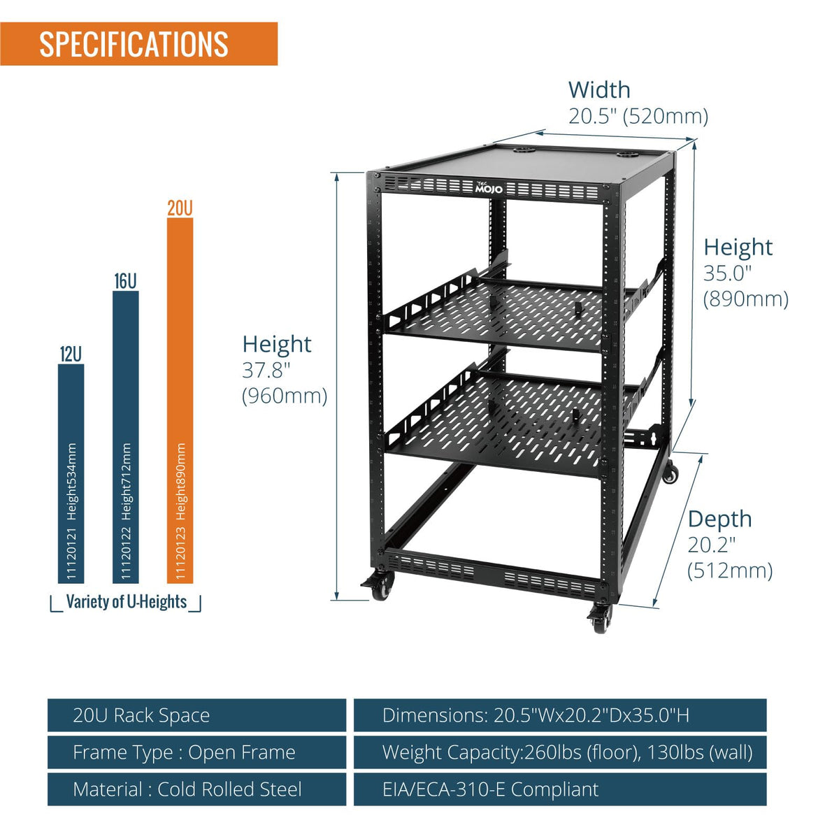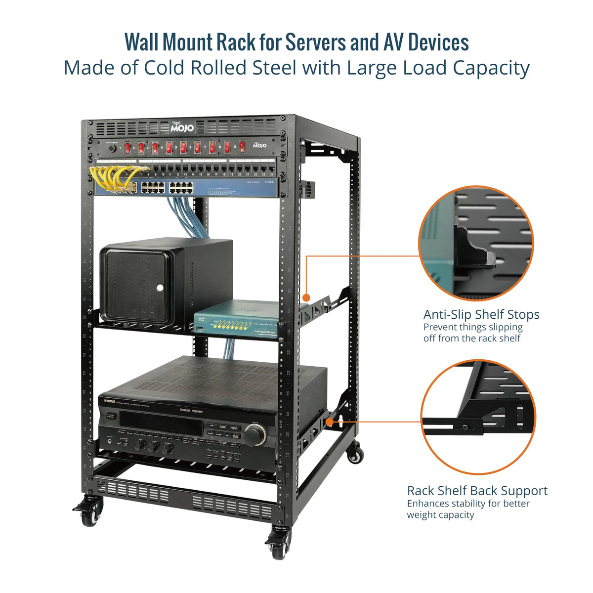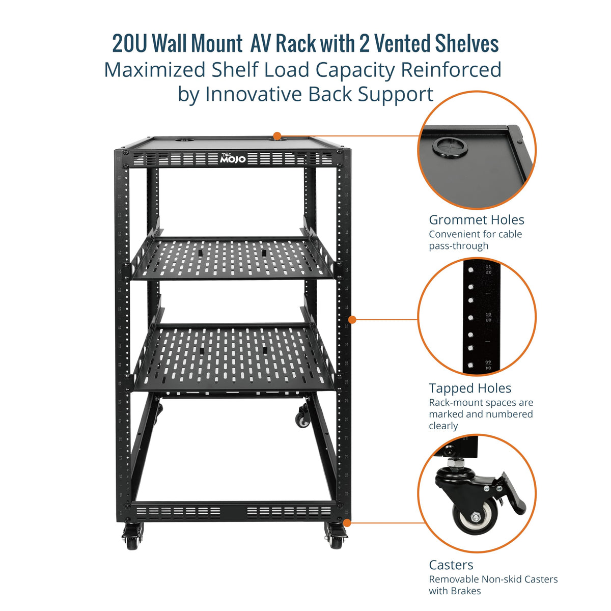 Tecmojo 20U Open Frame Network Rack For Servers&Av Gear, Server Rack 4 Post With Casters, Mobile Server Rack With 2 Pcs 1U Serve