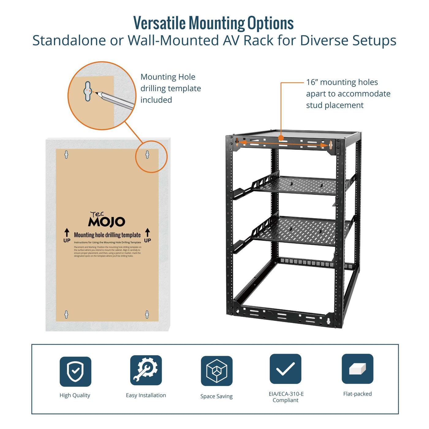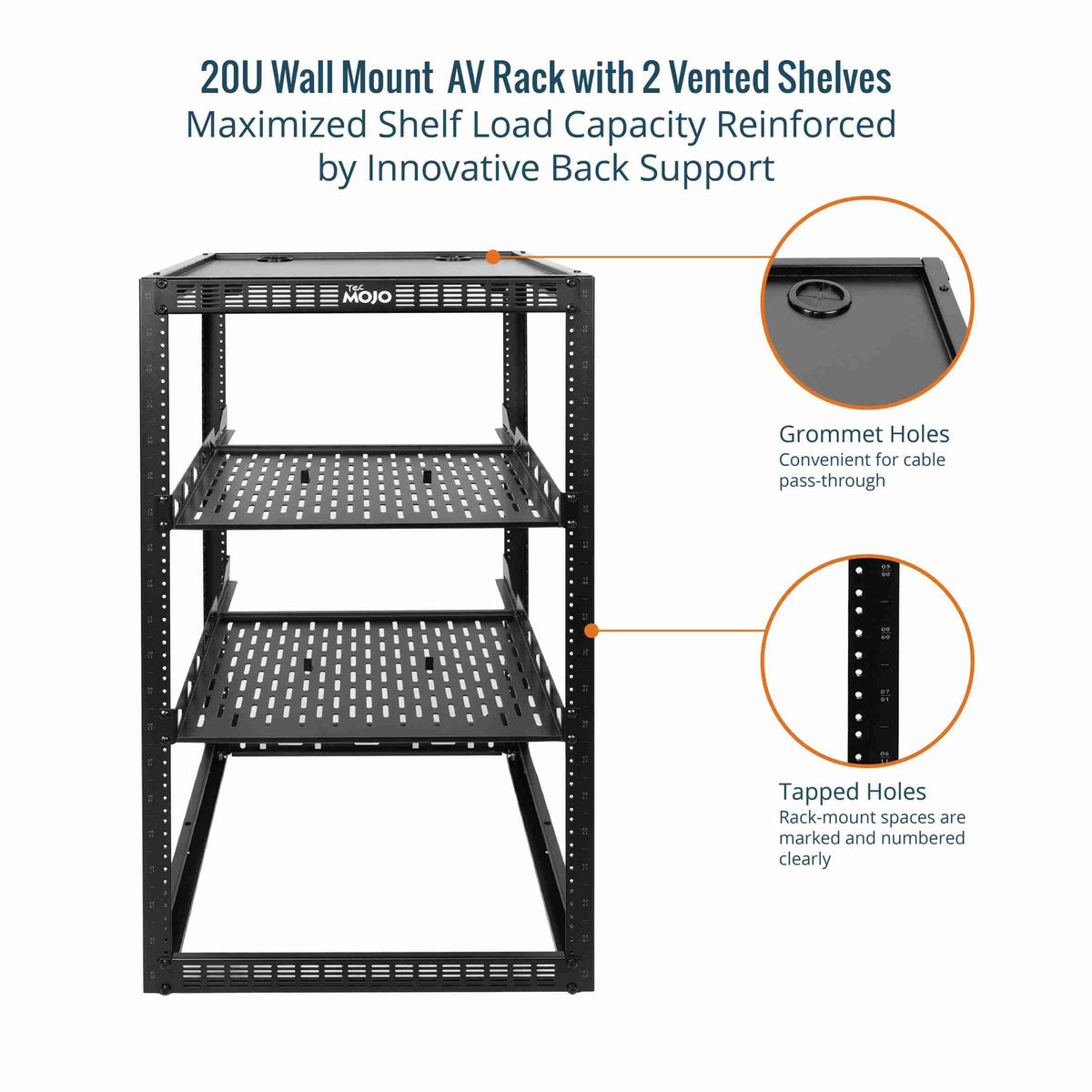 Tecmojo 20U Open Frame Network Rack For Servers & Av Gear,Server Rack Floor Standing Or Wall Mounted,With 2 Pcs 1U Rack Shelves