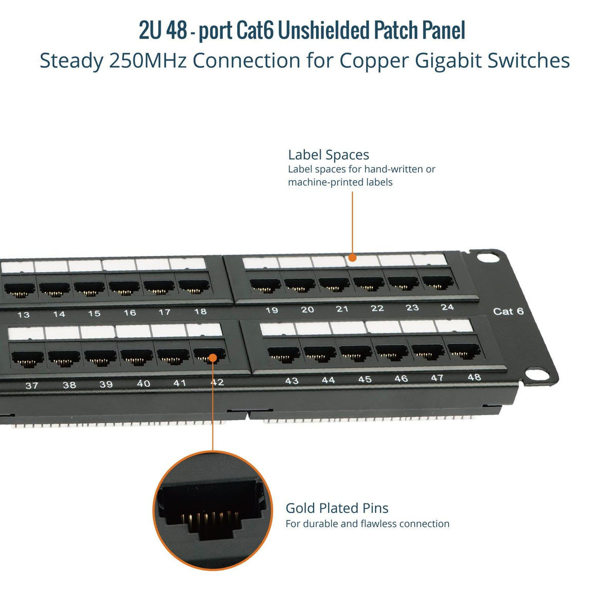 Tecmojo 48 Port Patch Panel,2U Patch Panel,Cat6 Patch Panel,Network Patch Panel For Network Switch,Patch Panel For 19Inch Server