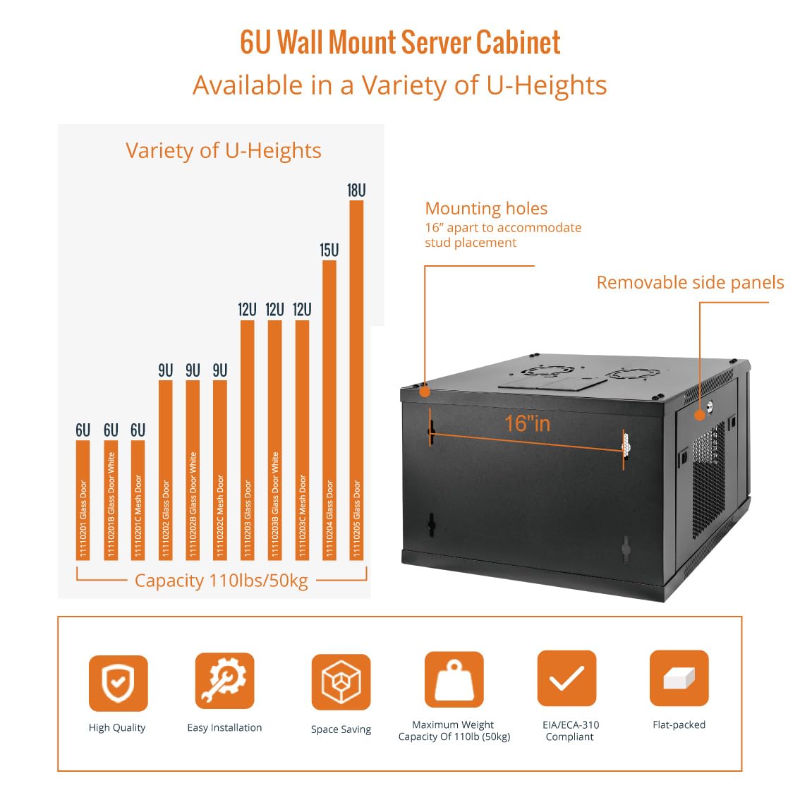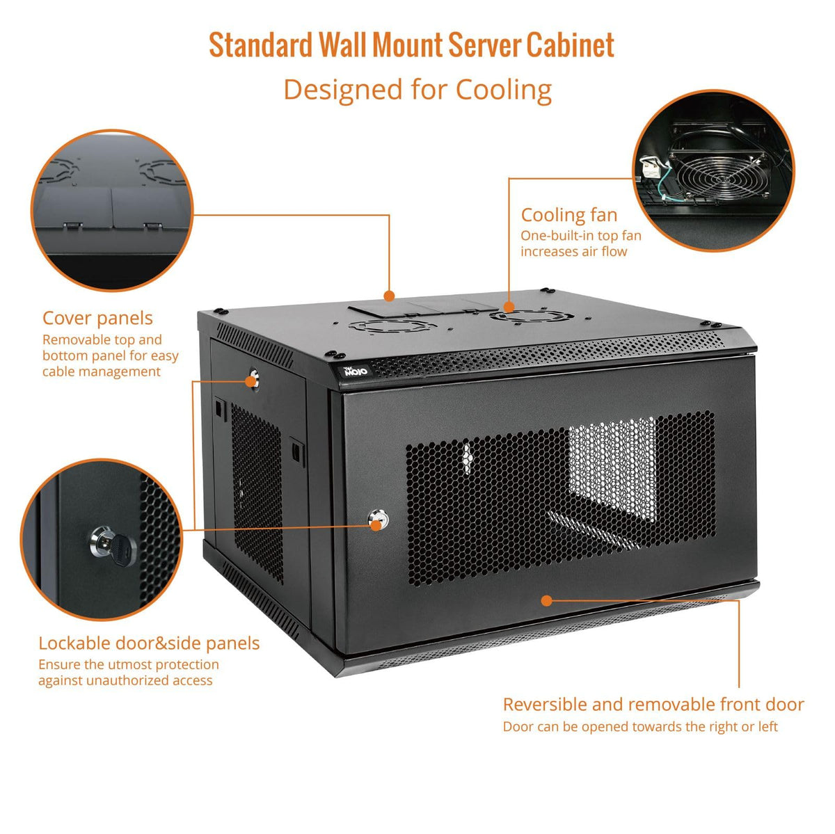 Tecmojo Standard Series Wall-Mount Cabinets Are Designed To House, Secure And Organize The Eia-Standard 19-Inch Rack Devices In Classrooms, Retail Environment, Offices, And Other Locations With Limited Floor Space. The Frame Is Made From High Quality Cold Rolled Steel With Maximum Weight Capacity Of 110Lb. One-Built-In Top Fan(With Power Cable) And Flow Through Mesh Doors To Prevent Overheating Of The Network Rack.. Sturdy Electro-Static Powder Coating Provides Exceptional Durability On The Finish And Can Resist Conditions Found In Non-It Environments Such As Warehouses And Other Retail Locations. The Enclosure Is Pci & Hippa Compliant With Locking Door And Side Panel To Protect Your Critical Network Equipment And Help Prevent Unauthorized Access. Front Door Can Be Installed On Either Side Of The Front Cabinet To Satisfy Your Door Swing Orientation Preference. This Unit Comes Flat Packed With Hardware For Wall And Equipment Mounting. Easy Assembly Is Required. Available In 6U, 9U & 12U Configurations.