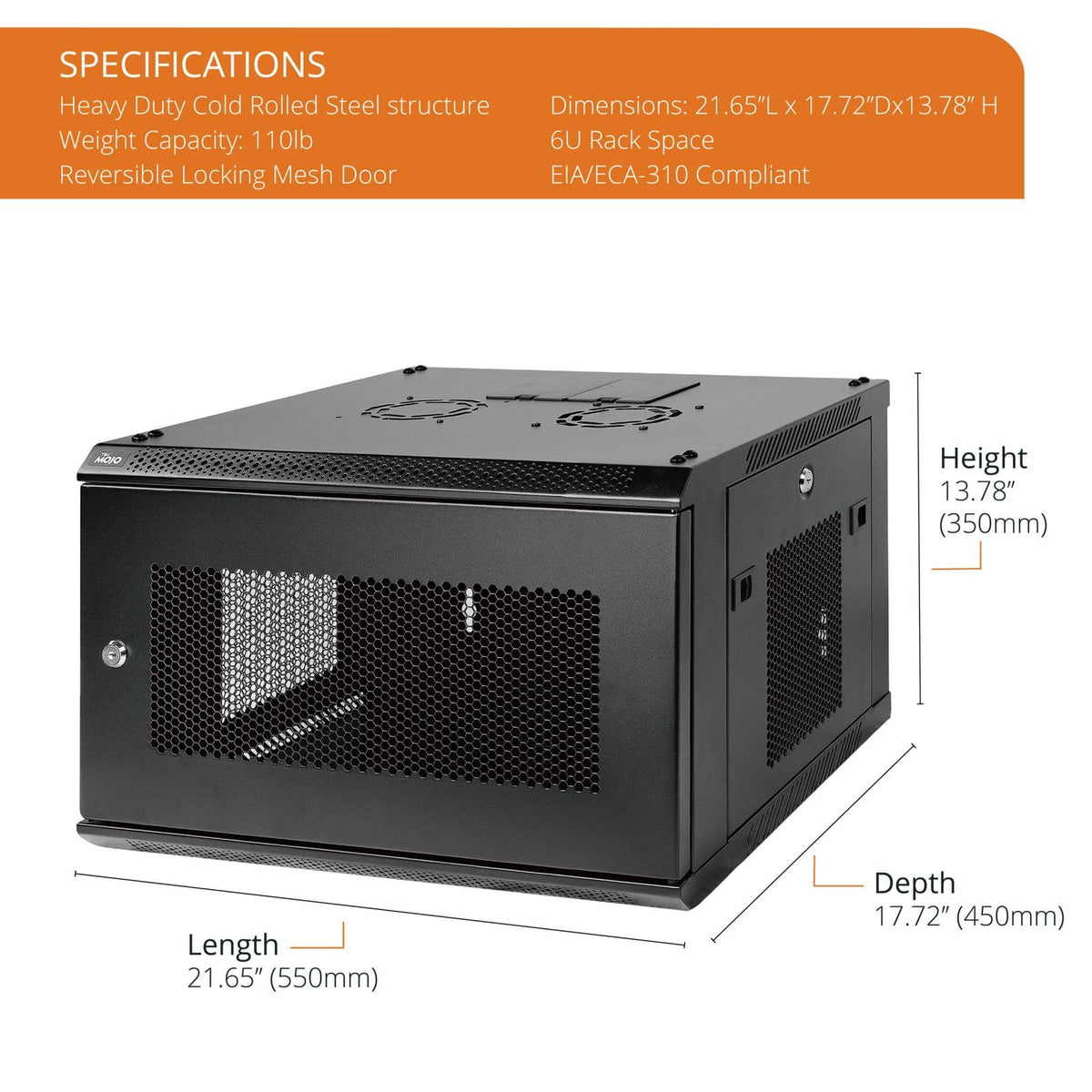 Tecmojo 6U Wall Mount Rack Network Cabinet For 19'' It Equipment,With Lockable Mesh Door And Side Panels,Cooling Fan,17.7Inch De