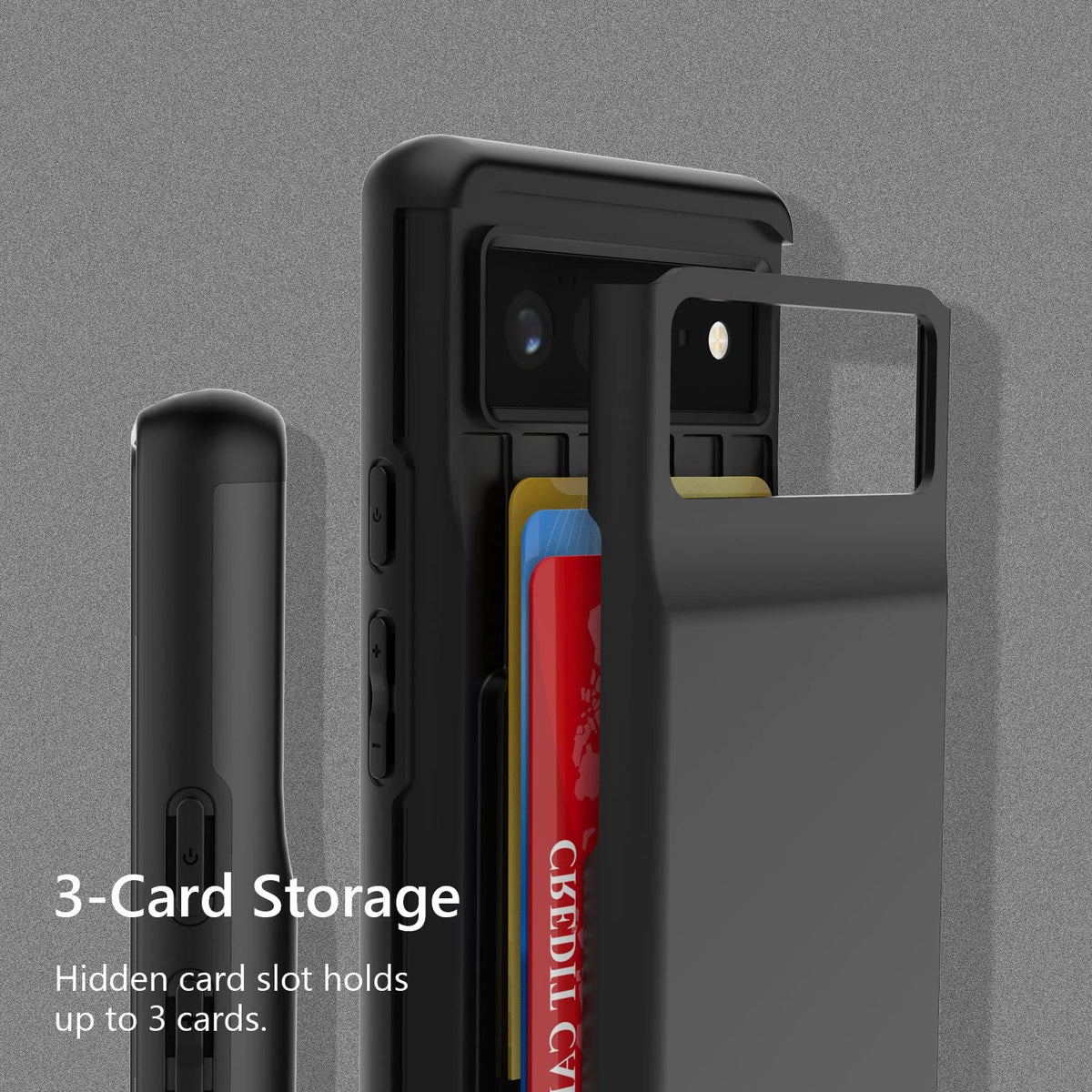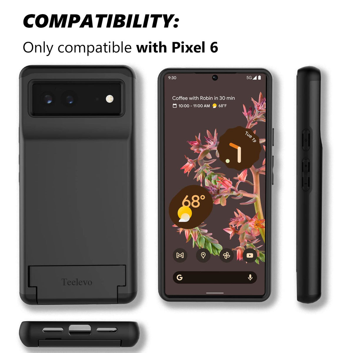 Teelevo Dual Layer Wallet Case For Google Pixel 6, Protective Case With 3 Card Storage For Google Pixel 6 Black