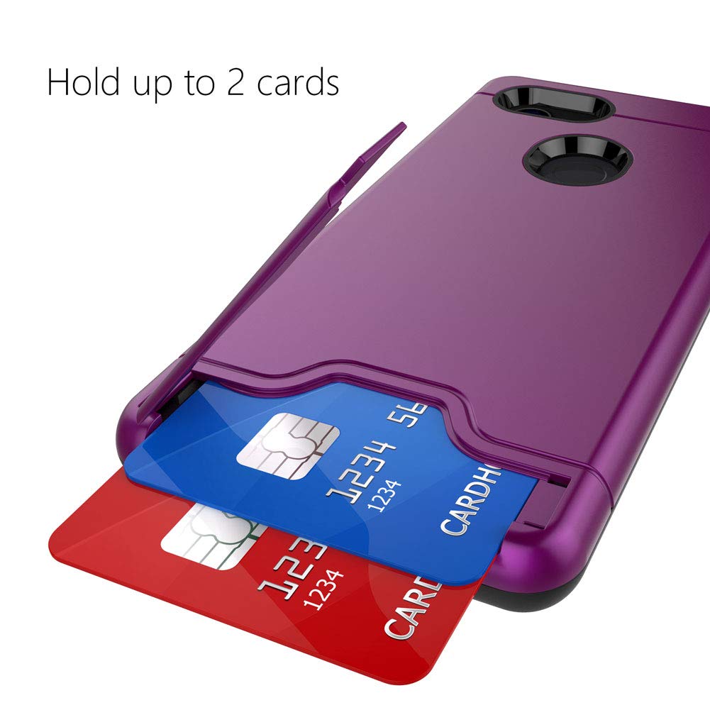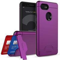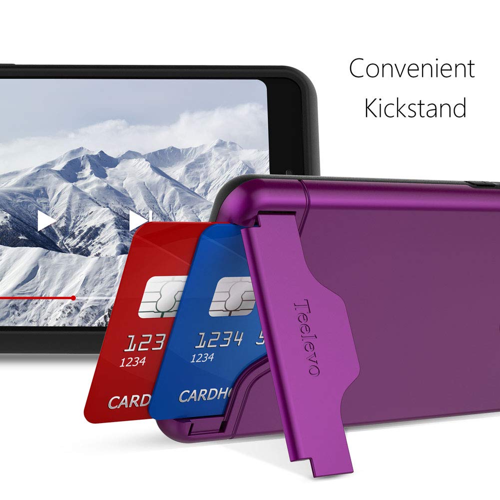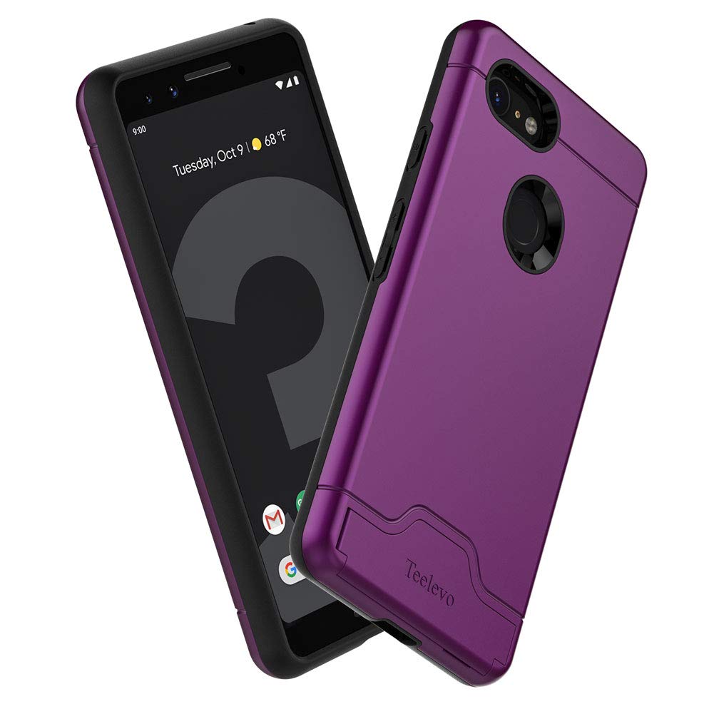 Teelevo Wallet Case For Google Pixel 3, Dual Layer Case With Card Slot Holder And Integrated Kickstand For Google Pixel 3 Purp