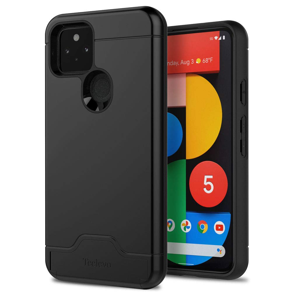 Teelevo Wallet Case For Google Pixel 5, Dual Layer Case With Card Slot Holder And Kickstand For Google Pixel 5 Black