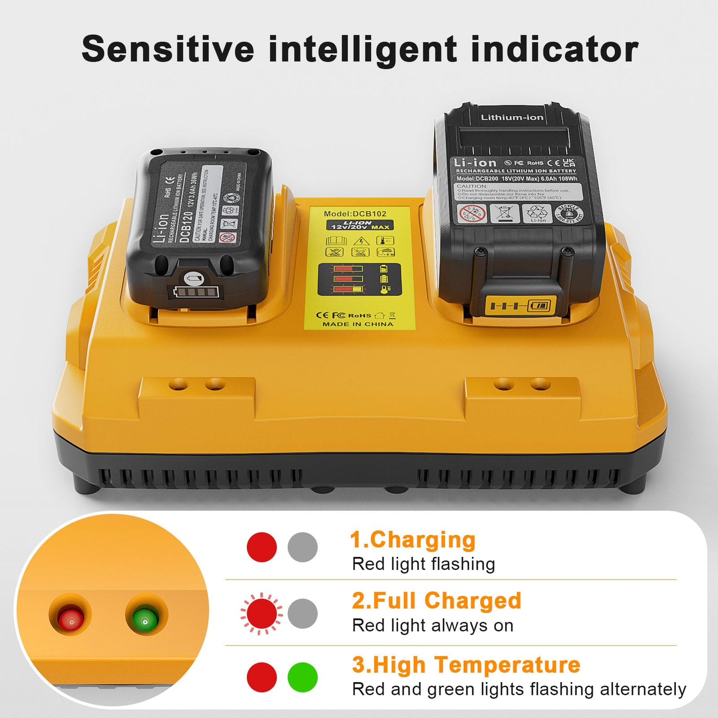 Q: Is the TeenPower battery charger compatible with all Dewalt 12V and 20V batteries?A: Yes, the TeenPower battery charger is fully compatible with Dewalt 12V and 20V Max batteries, including models DCB120, DCB124, DCB127, DCB200, DCB203, DCB204, and DCB606.
