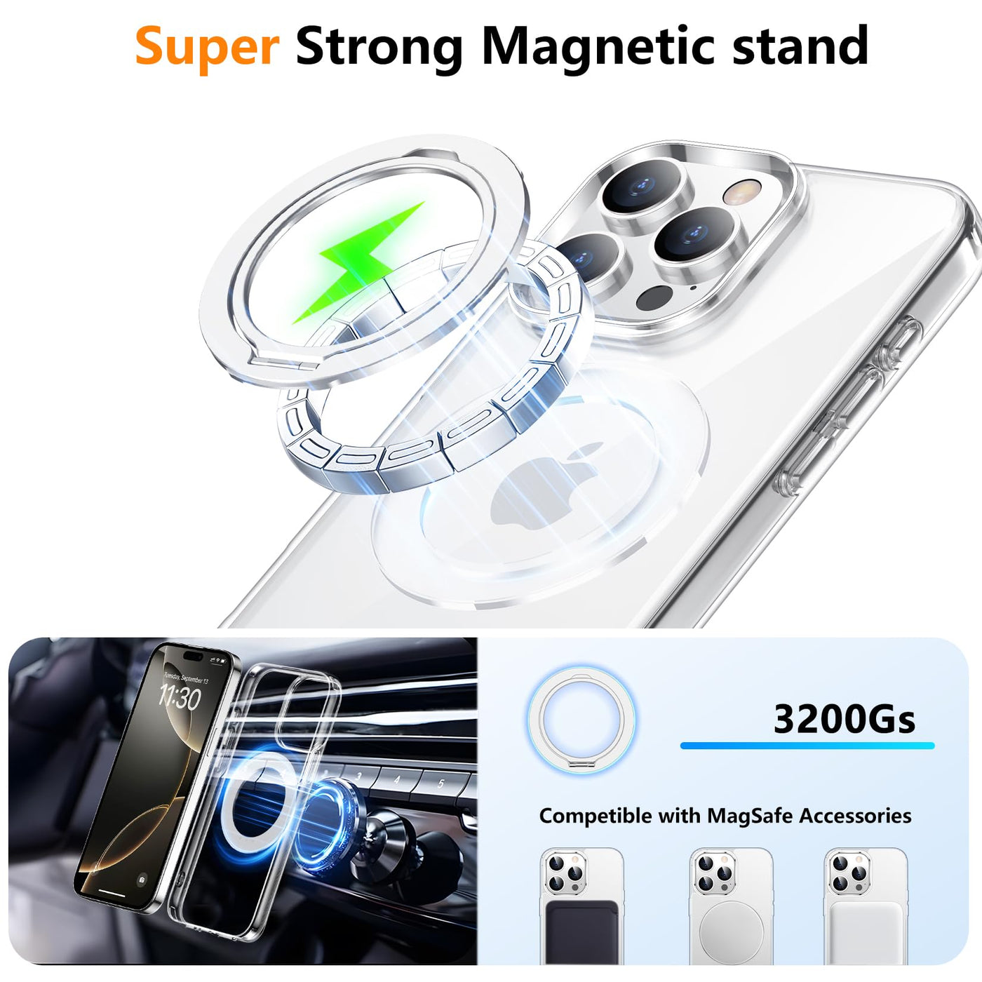 Temdan Designed For Iphone 16 Pro Case, 360Rotatable Ring Stand Case Compatible With Magsafe Military Grade Protection Magnetic