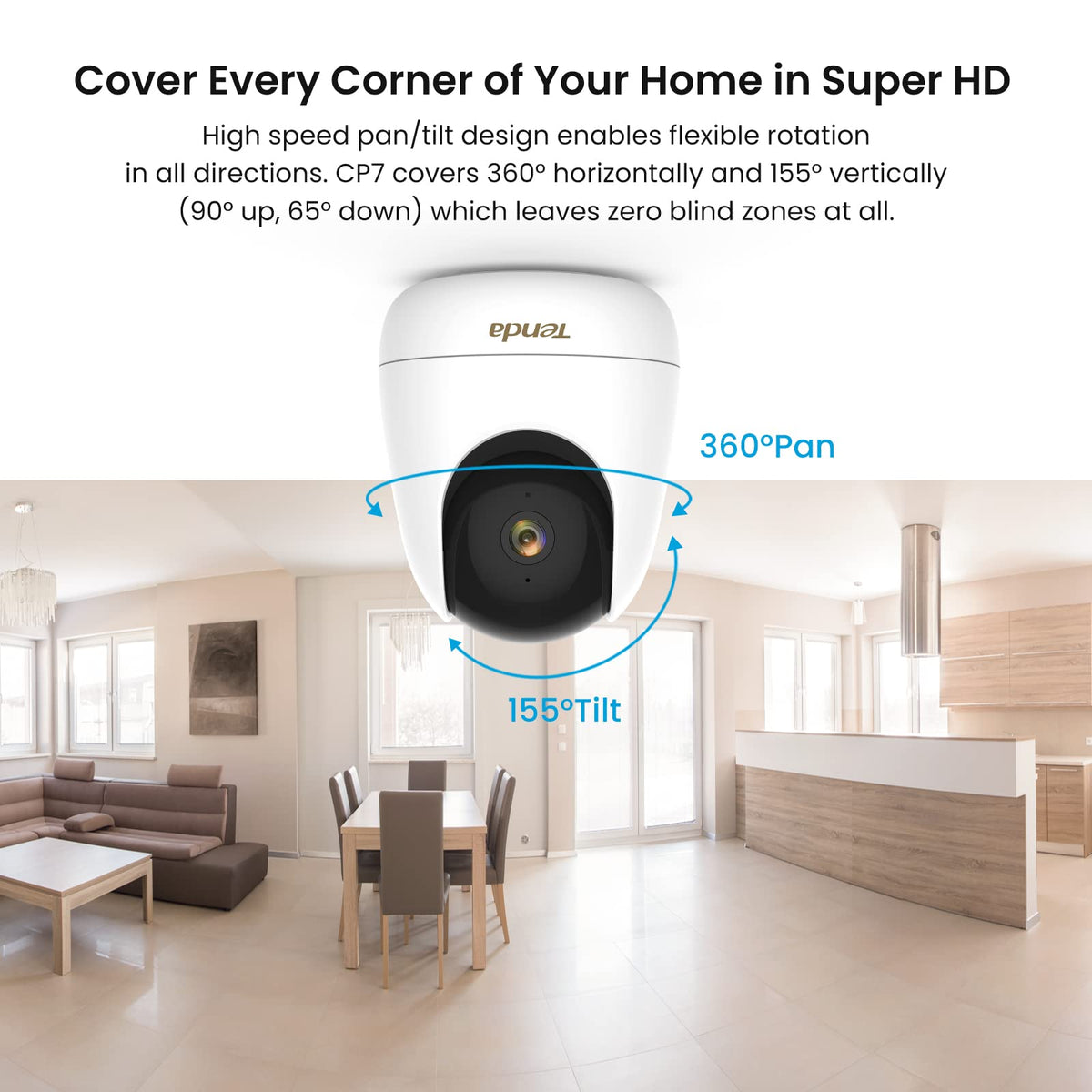 Tenda Cp7 Is A Security Camera For Home. With 2.5K High Definition And Wide Dynamic Range Support, The Tenda Cp7 Provides Clear Images For A Wide Range Of Applications, Including Home Security, Baby Monitoring And Pet Monitoring.