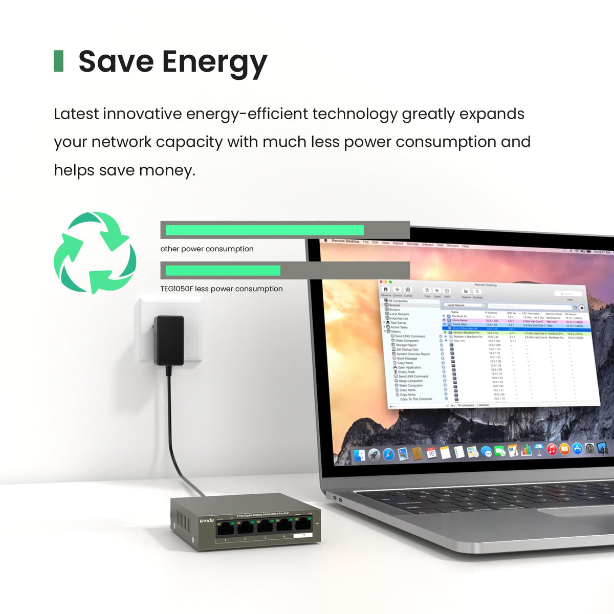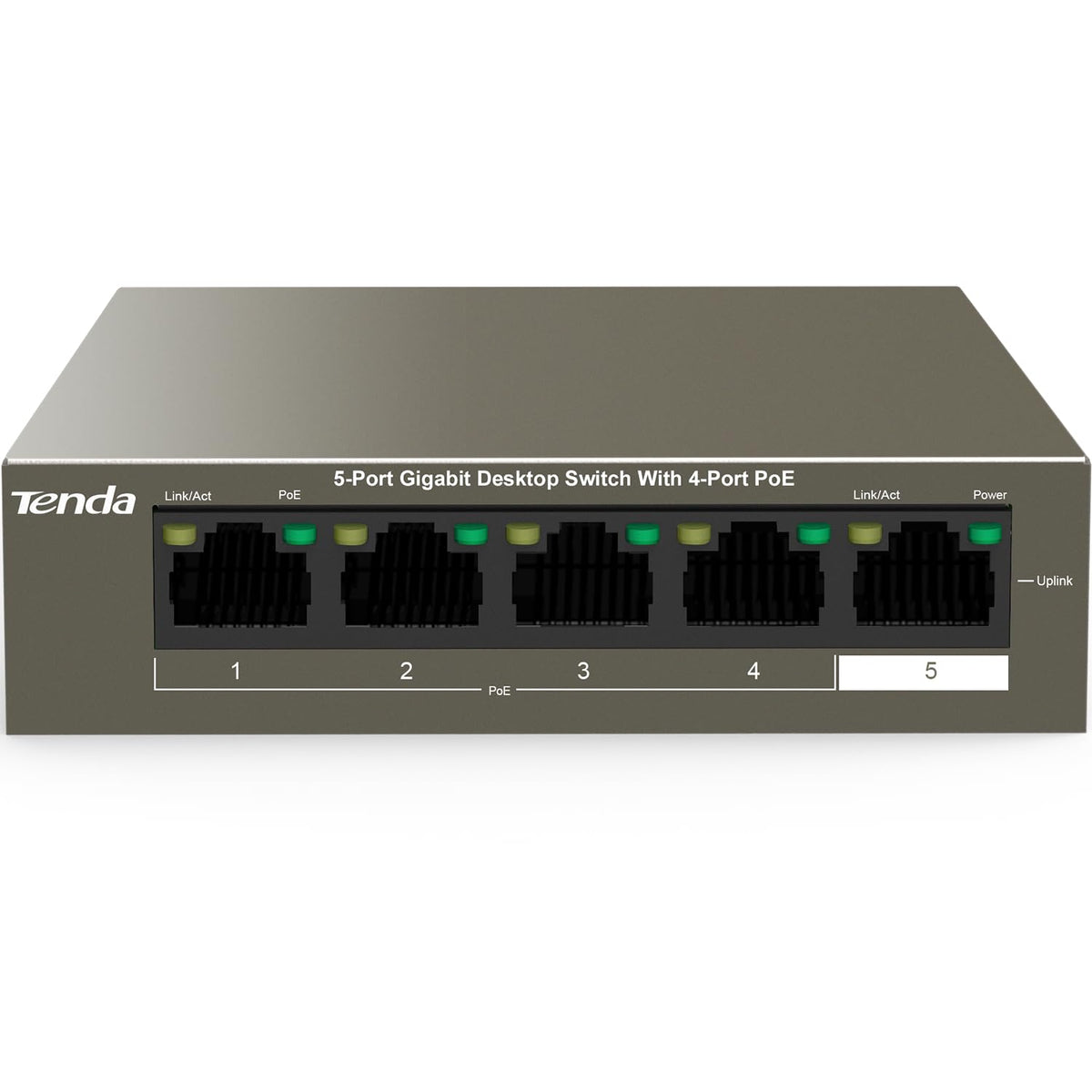 Tenda Teg1105P, 5 Port Gigabit Poe Switch Compatible With Ieee 802.3Af/At Devices, Unmanaged Poe Switch With 4 Port Poe+@63W, Plug & Play, Fanless & Metal Design, Limited Lifetime Protection