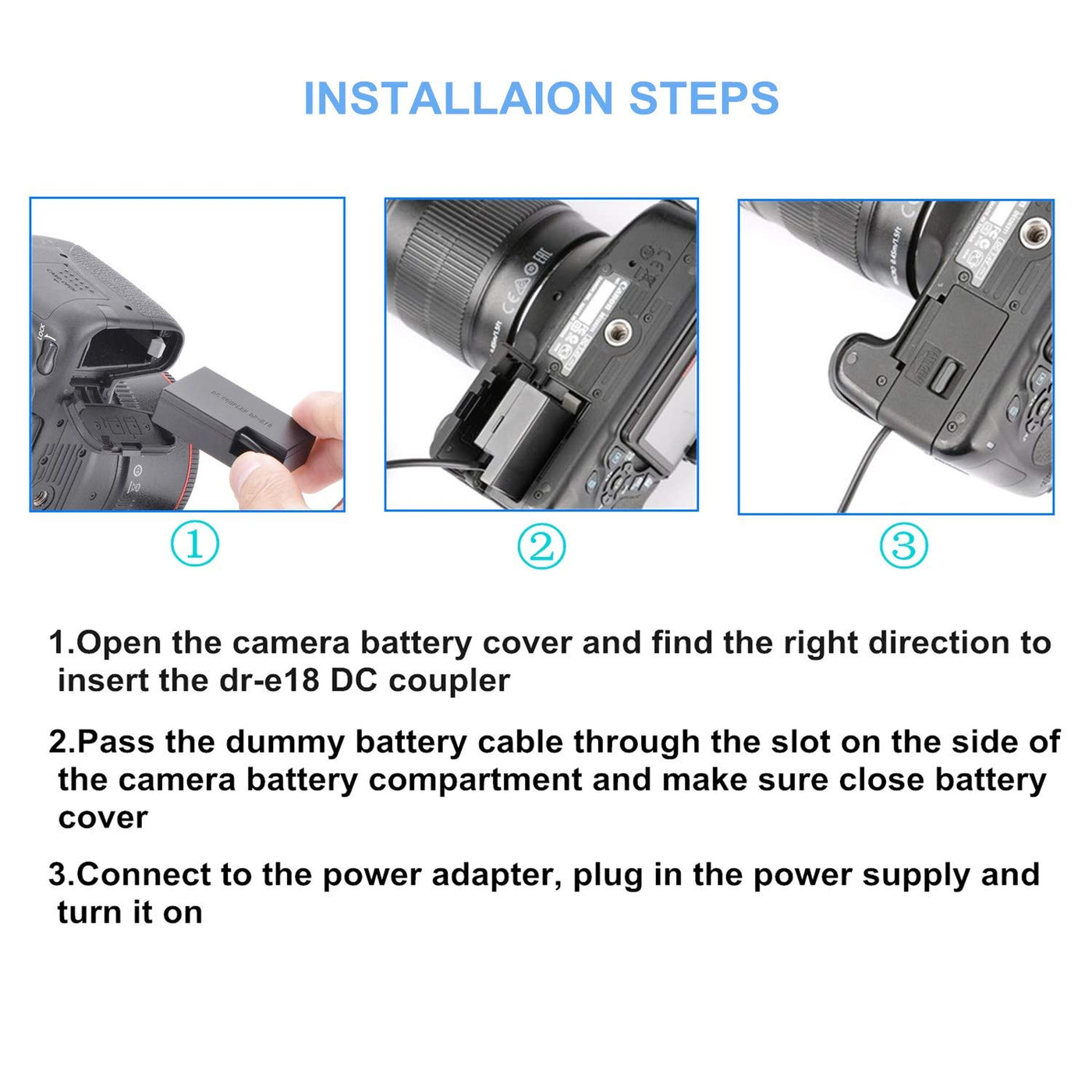 The Ack-E18 Ac Power Adapter Kit Is Designed For Indoor Shooting. Its Main Function Is To Replace The Battery And The Charger When Shooting Indoors. It Allows For Accurate, Long-Term Studio Photography Without The Need To Continuously Replace And Recharge Multiple Batteries. Let Studios Easily Shoot, Download, Manipulate Or View Photos Or Videos While Connected To A Pc, Tv, Or Vcr. You Can Save Shooting Time And Improve Shooting Efficiency Compatible With The Canon Following Camera Models: Eos Rebel T6I / 750D Eos Rebel T6S / 760D Eos Rebel T7I / 800D Eos Rebel Sl2 / Sl3 Eos Rebel200D/200D Ii Eos Rebel 250D Eos Rebel 77D Eos Rebel 8000D Eos Rebel Kiss X8I/ Kiss X8 Note: It Is Not Compatible With Eos Rebel T6, T7, M3, M5, M6. Please Check Your Camera Models Before You Place Order Packing List: 1 X Ac To Dc Adapter 1 X Ac Cord ( Us Plug ) 1 X Dr-E18 Dc Coupler Product Specification : Input: 100V-240V/0.6A ; Output: Dc 8V/3A Rated Power: 24W We Are A Professional Power Adapter Manufacturer .Please Feel Free To Contact Us For Any Product Problems, We Will Try Our Best To Solve It And Make You Satisfied.