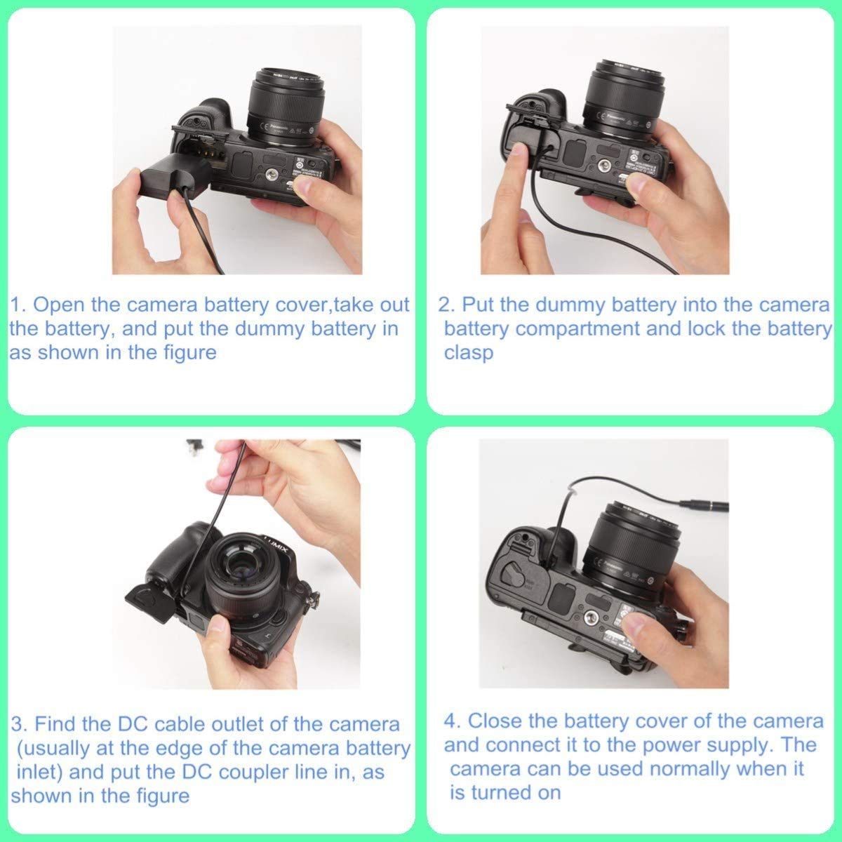 Dmw-Dcc12 Ac Power Adapter Charger Kit.This Kit Achieve Replacement Ac Power Adapter Is Designed To Supply Uninterrupted Power For Your Camera While Downloading Pictures To Your Computer,For Extended Work In A Studio, Or While Viewing Images While Connected To Your Tv Or Vcr. Compatible With The Following Camera Models: Panasonic Lumix Dmc-Gh3, Dmc-Gh4 ,Dmc-Gh3K ,Dmc-Gh4K, Dc-Gh5,Sigma Sdq, Sdqh Product Specification : Input: 100V-240V ; Output: Dc 8.4V/2A Rated Power R: 16.8W Package List: 1 X Ac Adapter Dmw-Ac8 1 X Ac Cord( Us Plug ) 1 X Dmw-Dcc12 Dc Coupler Pter Manufacturer .Please Feel Free To Contact Us For Any Product Problems, We Will Try Our Best To Solve It And Make You Satisfied.