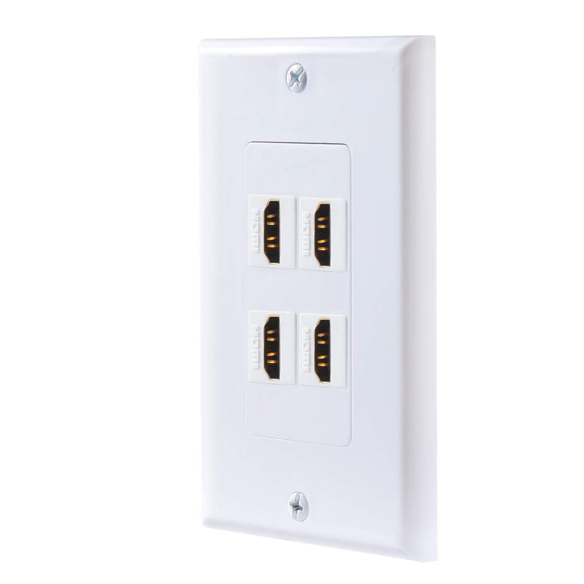 This Hdmi Wall Plates Can Be Used In Home, Commercial And Industrial Buildings To Cleanly Attach Hdmi Cables To A Home Theater Entertainment Equipment Cabinet Box, Junction Box, Surface Mount Box, Or A Mud Ring Mounted In The Drywall Of A Building. This Is 1 Port Hdmi Wall Plate With Support For The Hdmi Ethernet Channel Which Delivers Ethernet Data Connectivity; Backward Compatible With Hdmi 2.0 And Below With All Latest Functions & Features Like 4K 60Hz, Hdr, 3D, Arc, Etc. Package Content: 1 X Hdmi Wall Plate (4 Port, White) Hdmi Socket Plug Insert Jack Outlet Panel Mount Support 4K 60Hz Hdr 1080P 3D Ethernet Built In High Speed Cable Extension Coupler For Projector & Home Theater