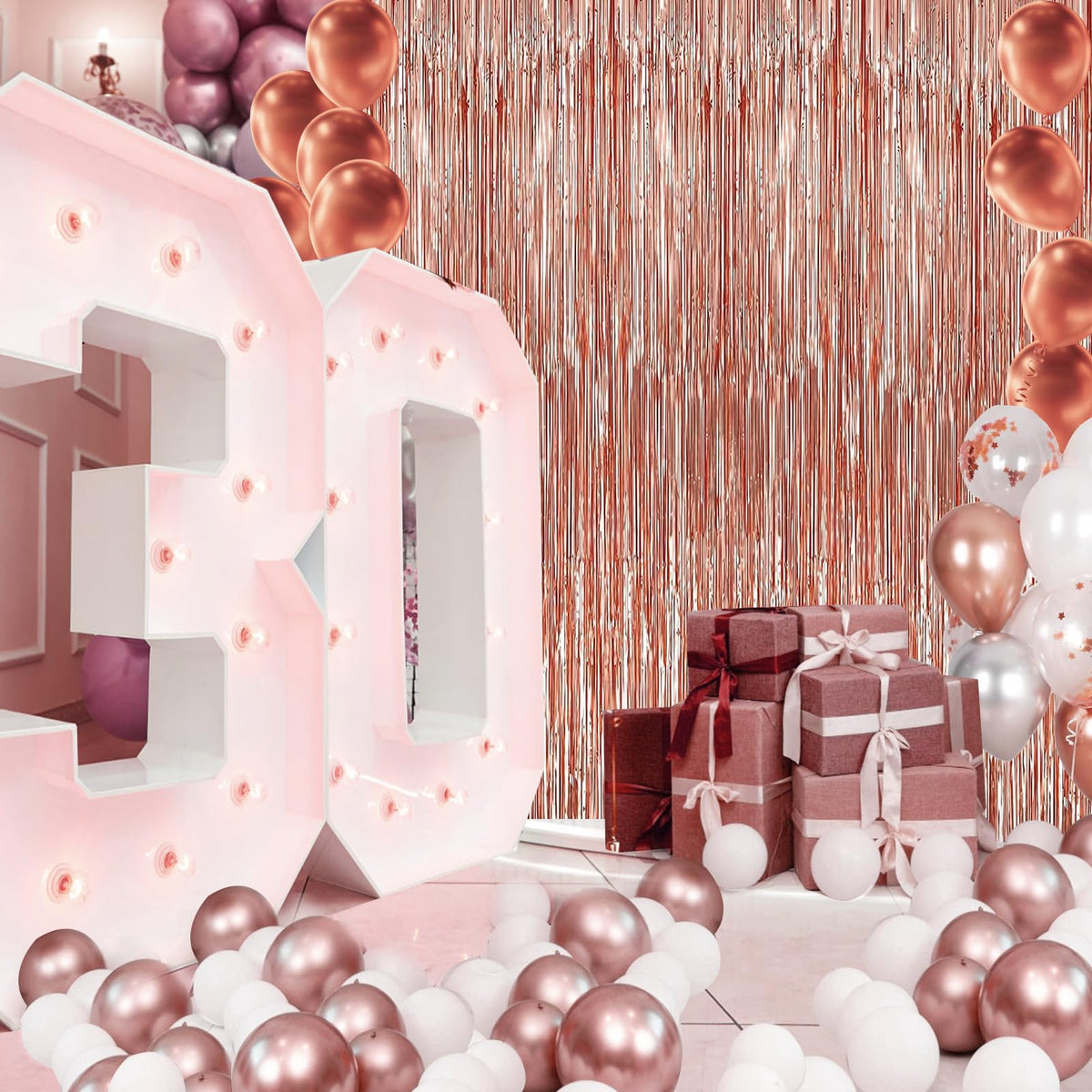 Tenlaitech 3 Pack 3.3 X 9.9 Ft Rose Gold Foil Fringe Backdrop Curtain, Streamer Backdrop Curtains, Streamers Birthday Party Deco