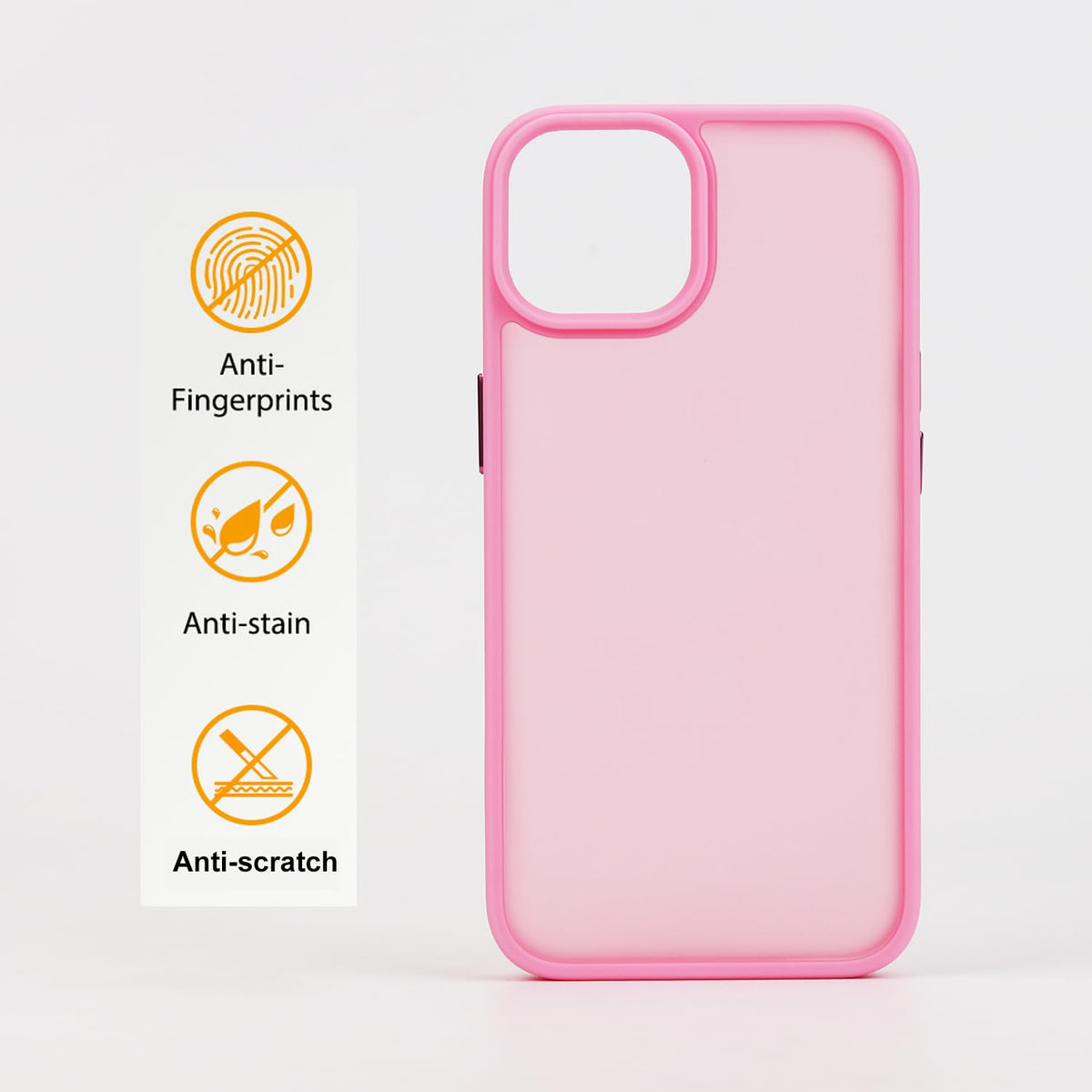 Tenoc Phone Case Compatible With Iphone 13 & Iphone 14, Pink Case Translucent Protective Bumper Matte Hard Back Cover For 6.1 In
