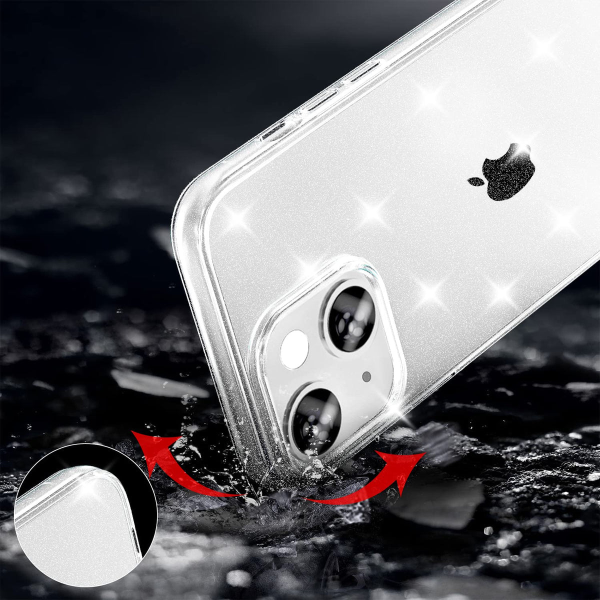 Q: How does the glitter design hold up over time?A: The glitter design is designed to be anti-yellowing and maintain its sparkle over time, while the case itself offers protection against scratches and impacts.