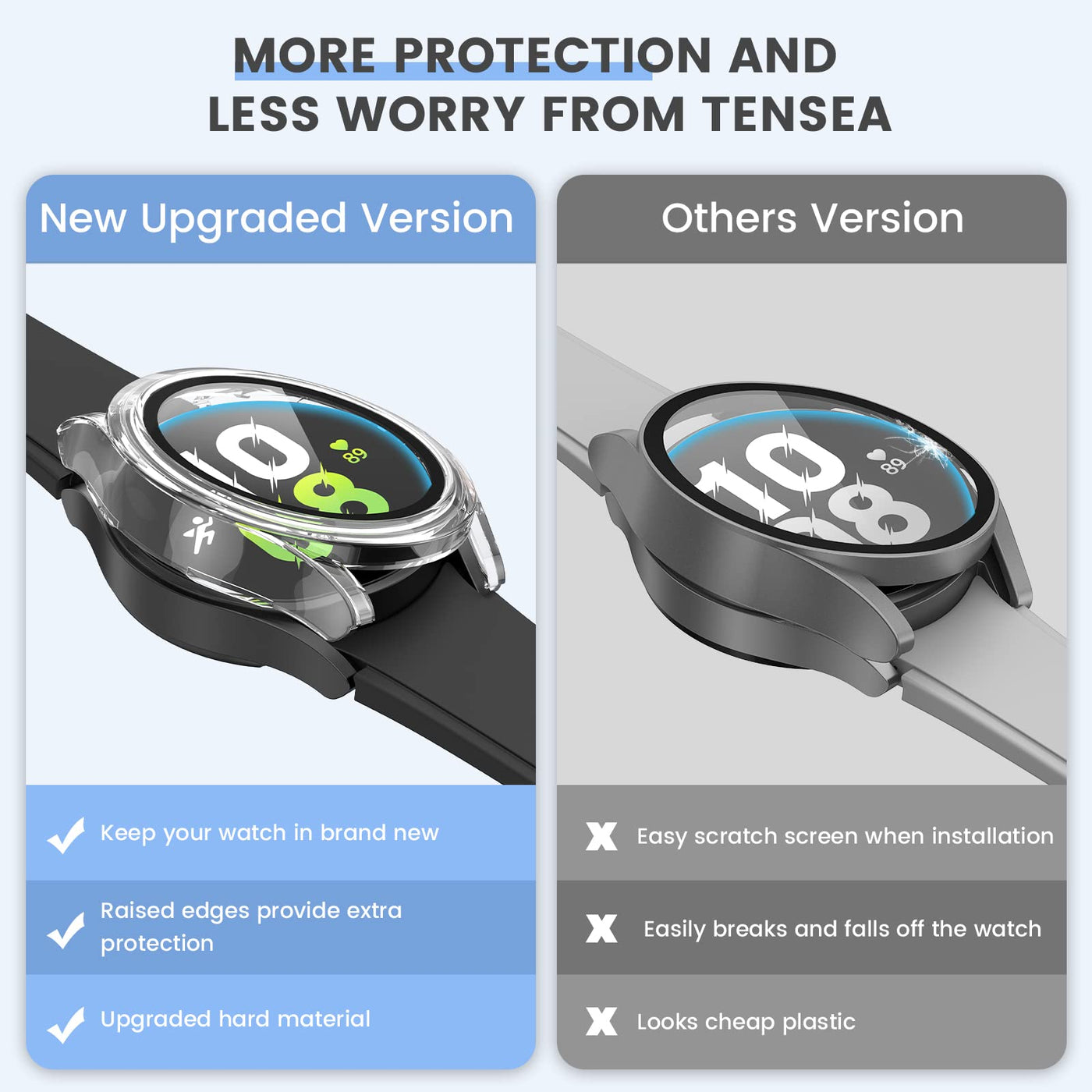 Q: Is the Tensea Screen Protector Case compatible with all Samsung Galaxy Watch models?A: No, the Tensea Screen Protector Case is specifically designed to fit the Samsung Galaxy Watch 5 44mm (2022 release) and is not compatible with other models such as the Galaxy Watch 5 40mm, Galaxy Watch 4, Galaxy Active 2, or Galaxy Watch 3.