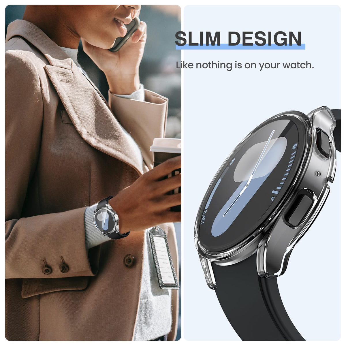 Tensea [2Pack] For Samsung Galaxy Watch 7 2024 Screen Protector Case 40Mm Accessories, Protective Face Cover For 40 Mm, Hard Bumper Built-In Tempered Glass Film For Women Men