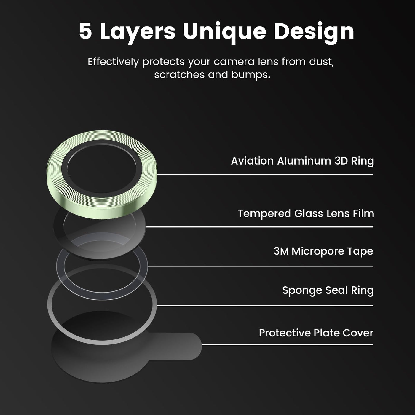 Q: What materials are used in the Tensea camera lens protector?A: The Tensea camera lens protector is made from high-quality tempered glass and aviation aluminum, offering both durability and a stylish appearance.