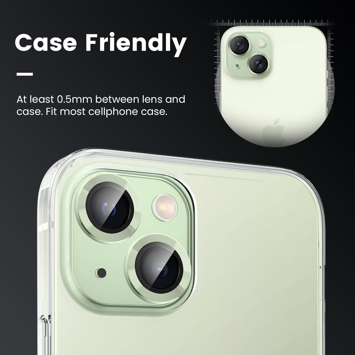 Q: Will the lens protector affect the quality of photos taken with my iPhone 15?A: No, the tempered glass lens protector features 99.99% light transmittance, ensuring that your photos maintain their original quality without any fog or color distortion.