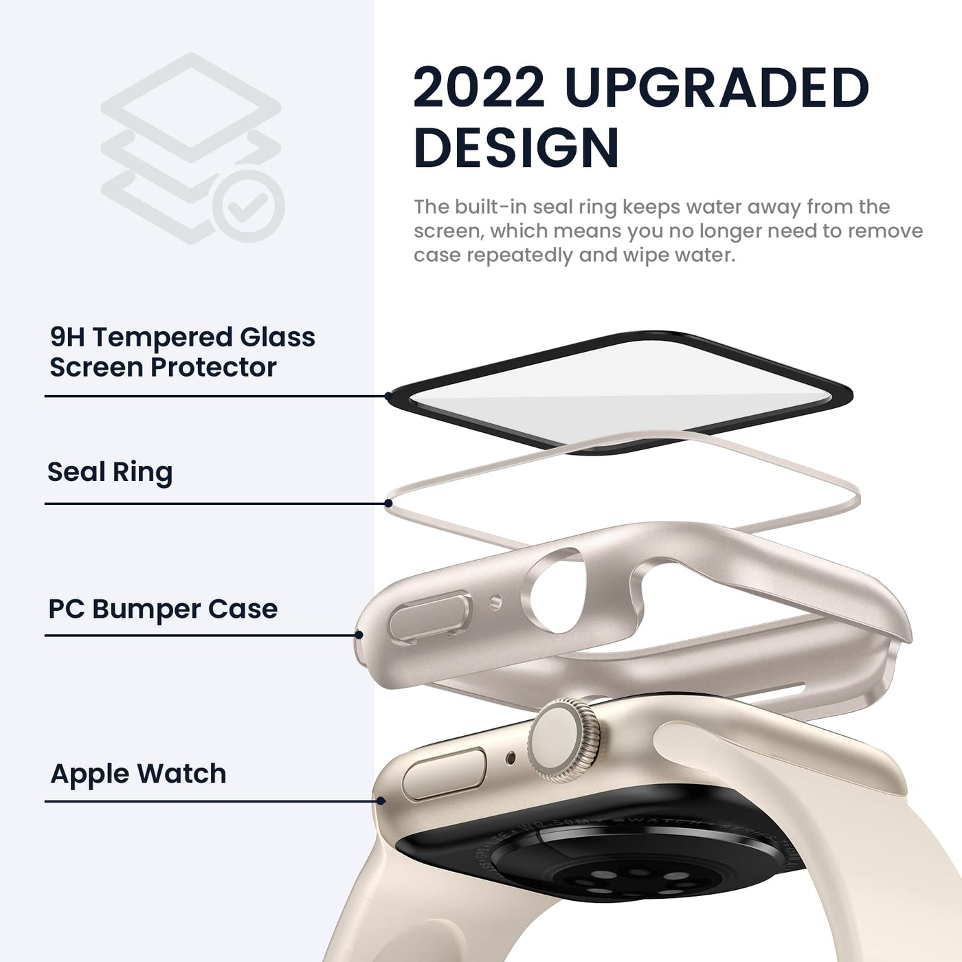 Tensea For Waterproof Apple Watch Screen Protector Case Series 9 8 7 45Mm Accessories, Iwatch Protective Pc Face Cover Built In