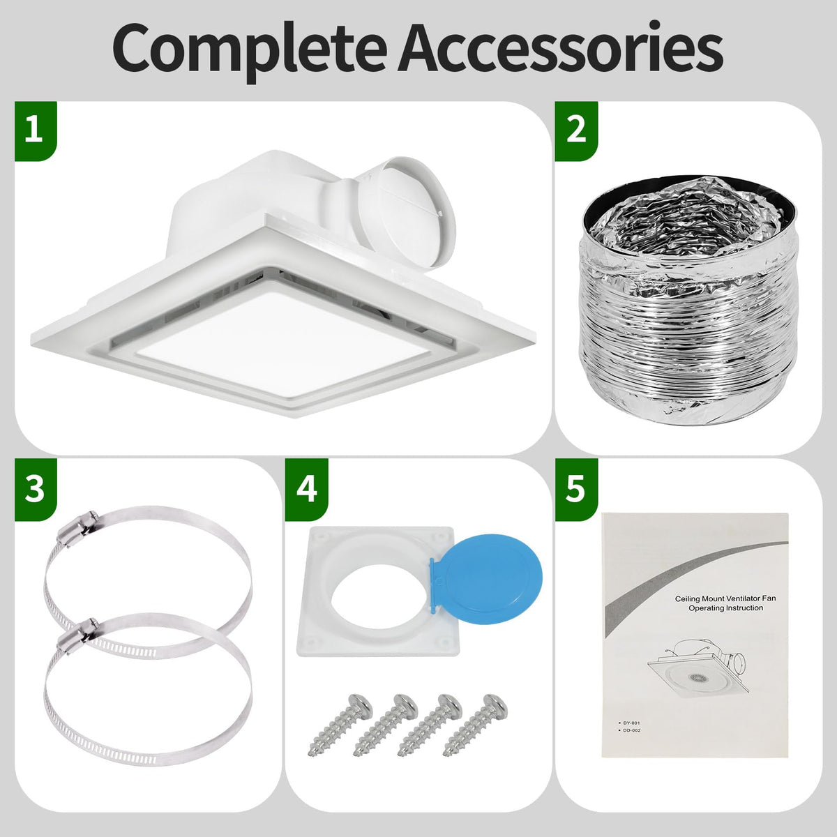 Q: How do I install the TEPU bathroom exhaust fan?A: The TEPU bathroom fan comes with detailed installation instructions and is designed for easy setup. Ensure the ceiling opening size is 9.84in×9.84in and the panel size is 11.8in×11.8in for proper fit.
