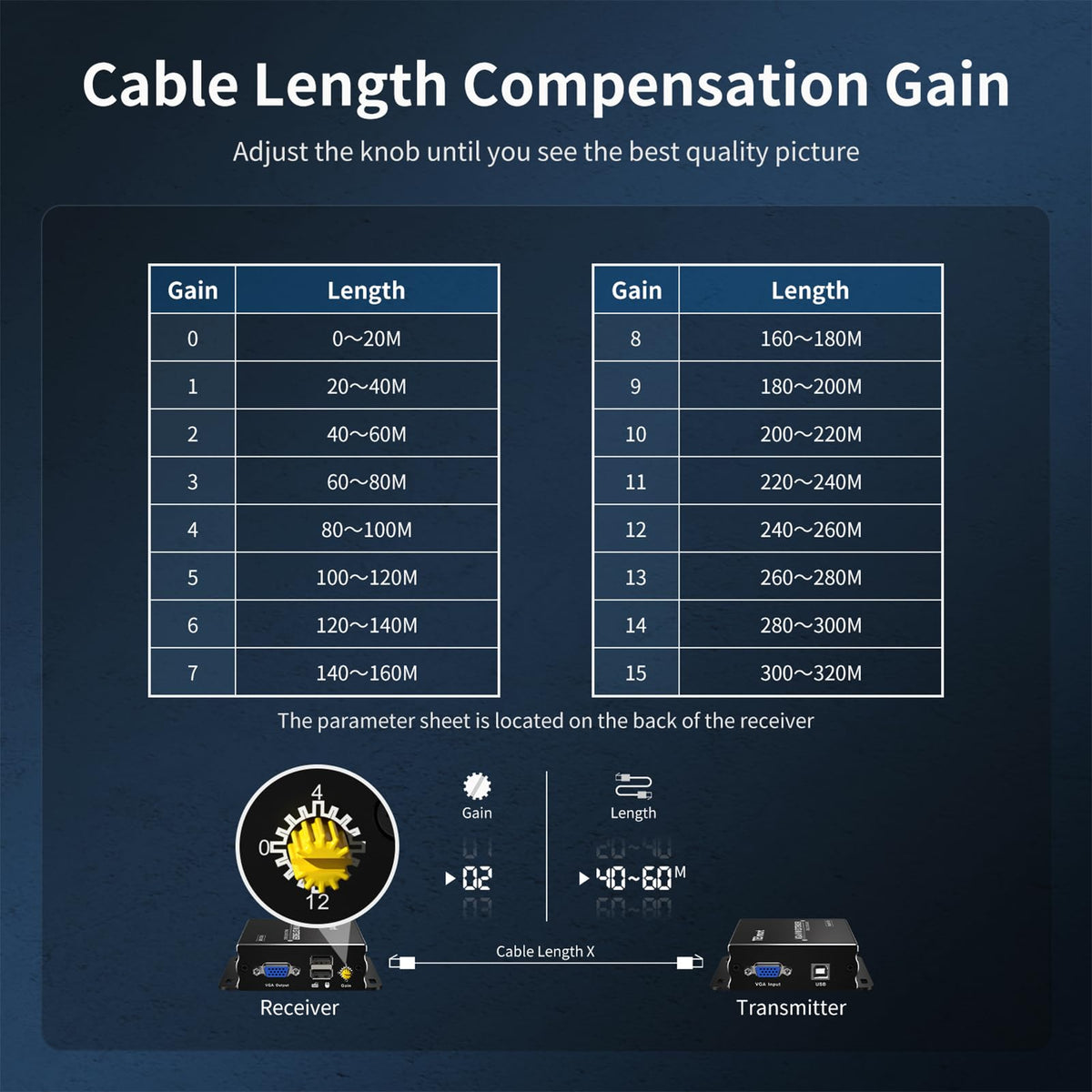 Tesmart 1080P 60Hz Long Range 984Ft Usb Vga Kvm Extender Over Cat5E Cat6 Ethernet Cable (Up To 984Ft/300M, Sender+Receiver)