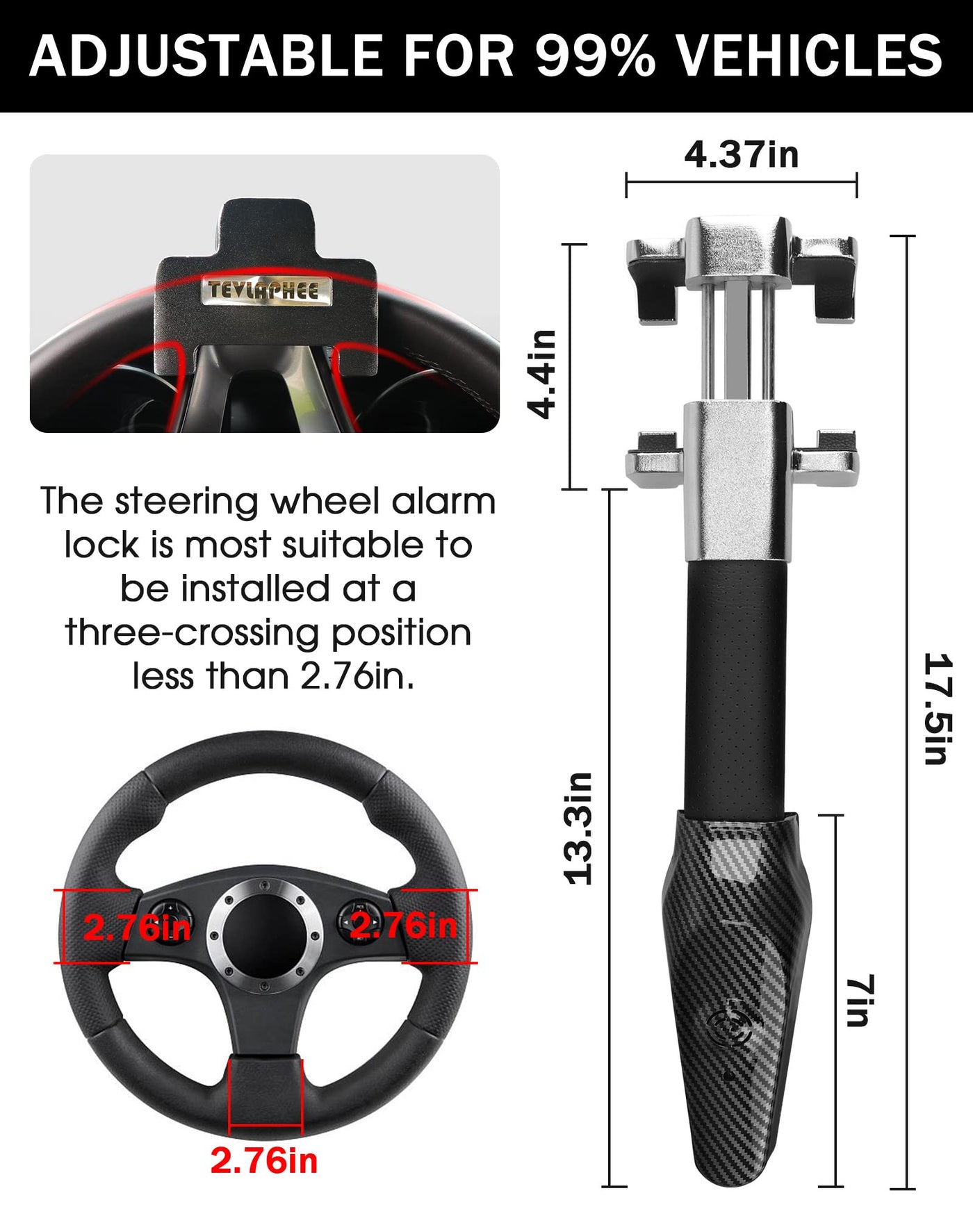 Tevlaphee Steering Wheel Lock With Alarm,Heavy Duty Anti Theft Car Device Car Lock Car Theft Prevention Universal Fit For Vehicl