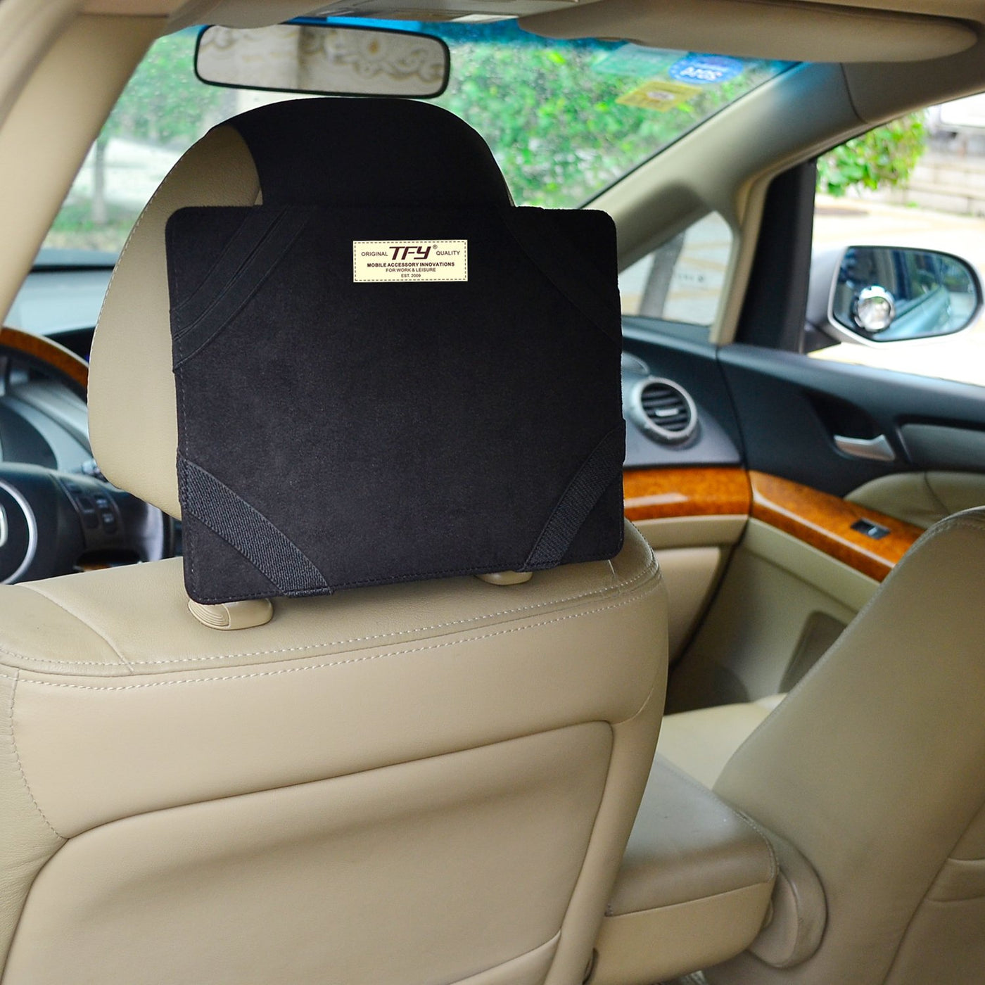 Q: How do I install the TFY Car Headrest Mount in my vehicle?A: Installation is simple and quick. The adjustable hook and loop fastening strap allows for easy mounting to most cars' headrests. Just secure the strap around the headrest and adjust for a snug fit.