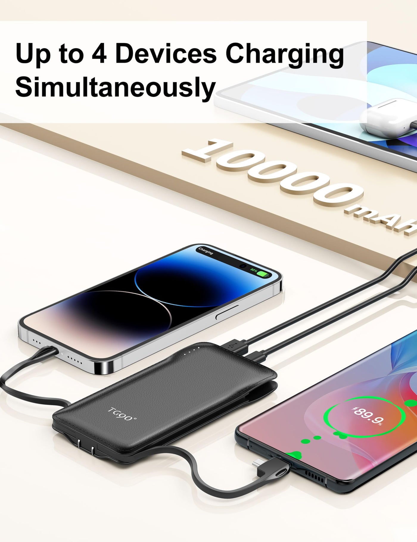 Q: What devices are compatible with the TG90° 10000mAh Power Bank?A: The TG90° Power Bank is widely compatible with various devices, including iPhone 16/15/14/13/12/11/X/XR/XS/SE models and most Android smartphones. It comes with built-in cables that make it convenient for charging multiple devices.