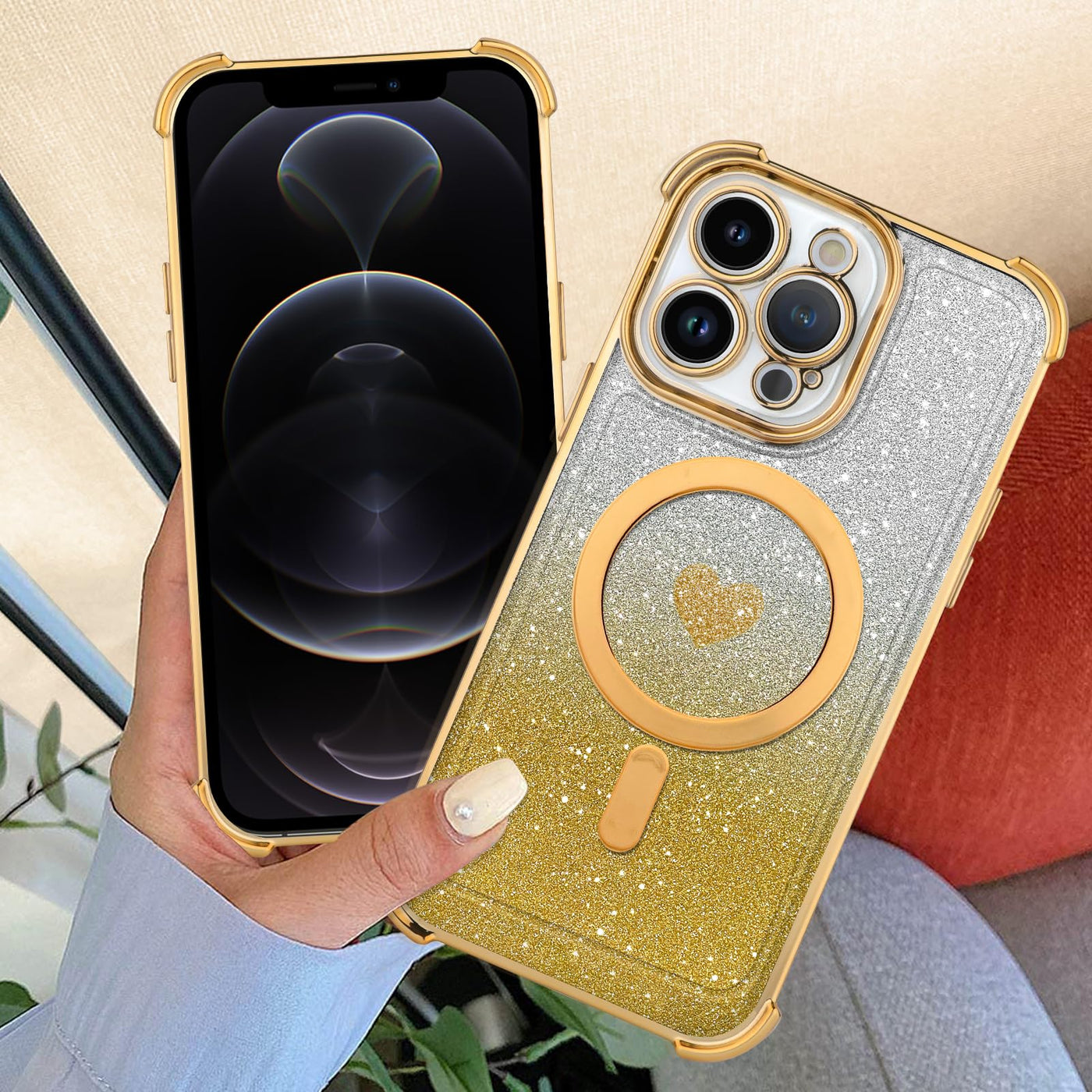 Tharlet Magnetic For Iphone 12 Pro Max Case [Compatible With Magsafe] Glitter Cute Love Luxury Plating Plating Bling Clear Phone