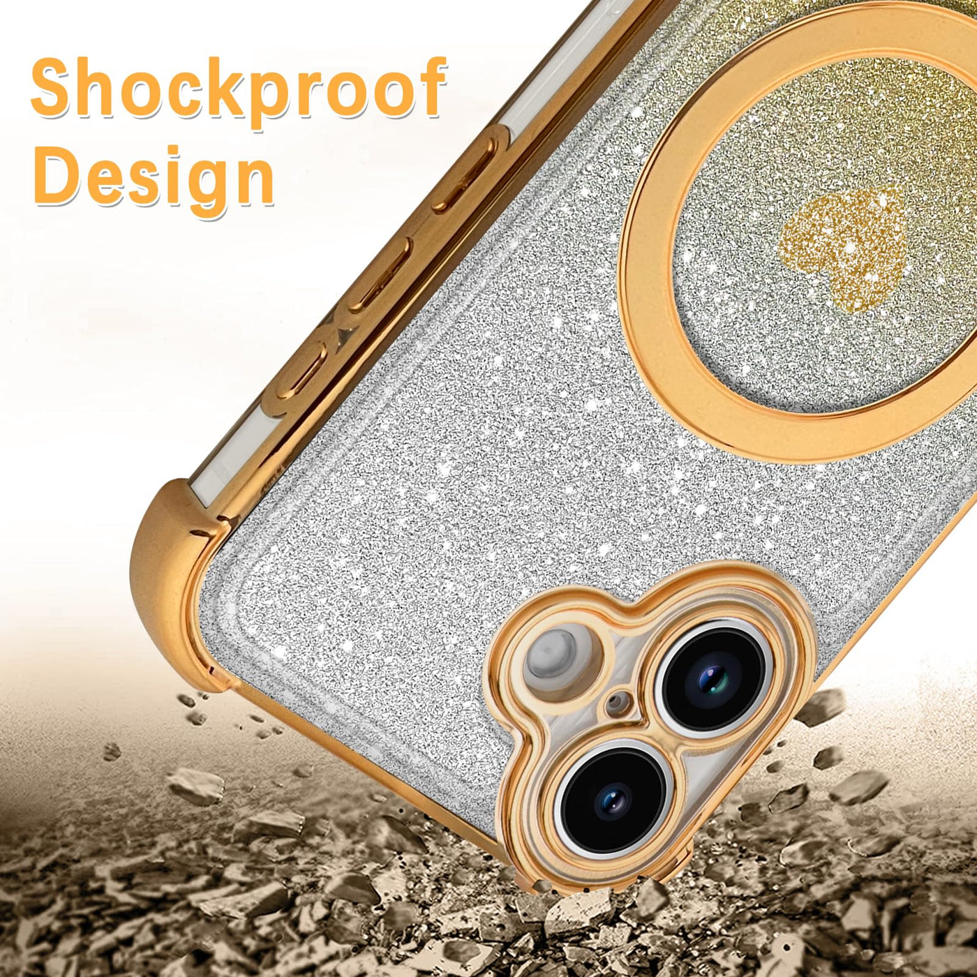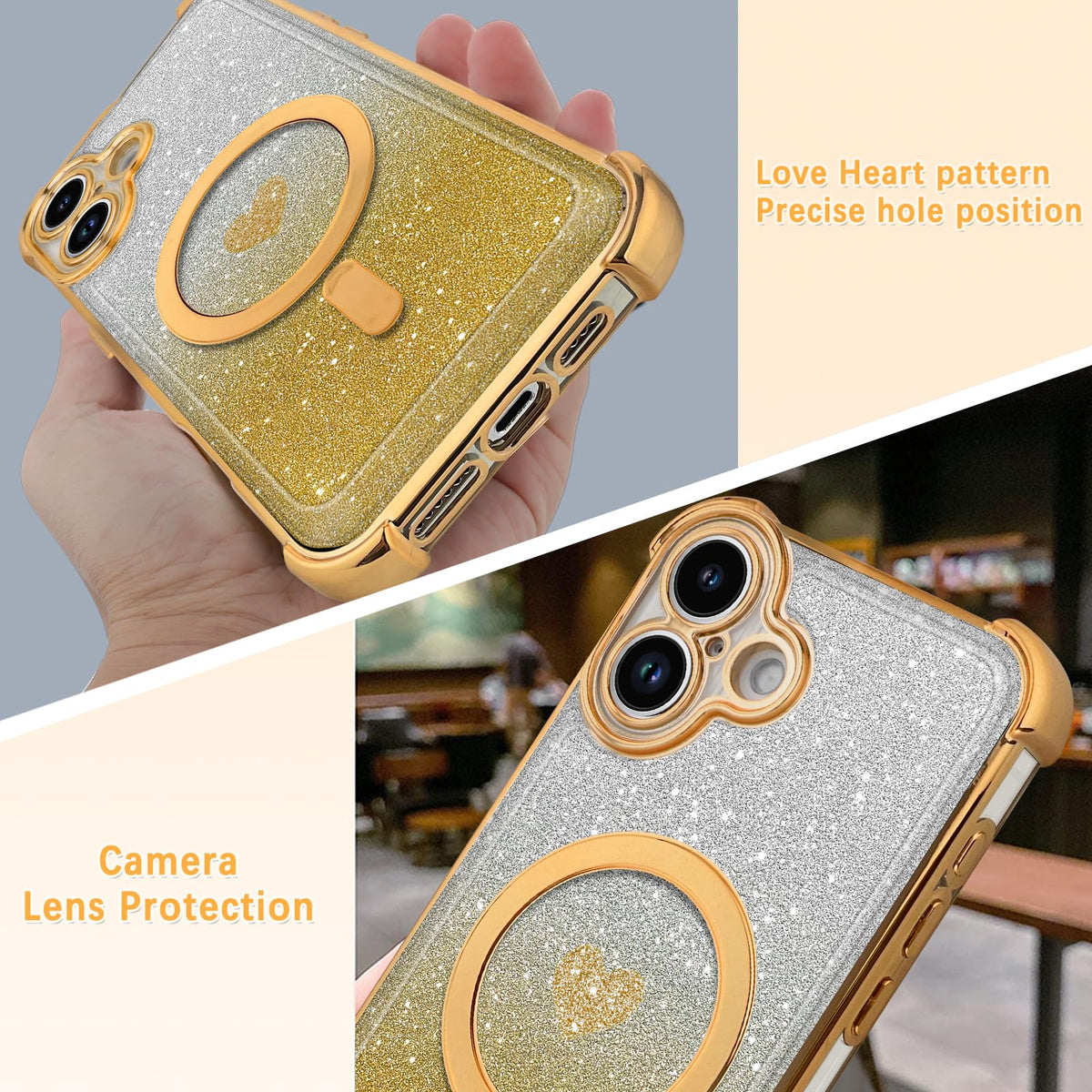 Tharlet Magnetic For Iphone 16 Plus Case [Compatible With Magsafe] Glitter Cute Love Luxury Plating Plating Bling Clear Phone Ca