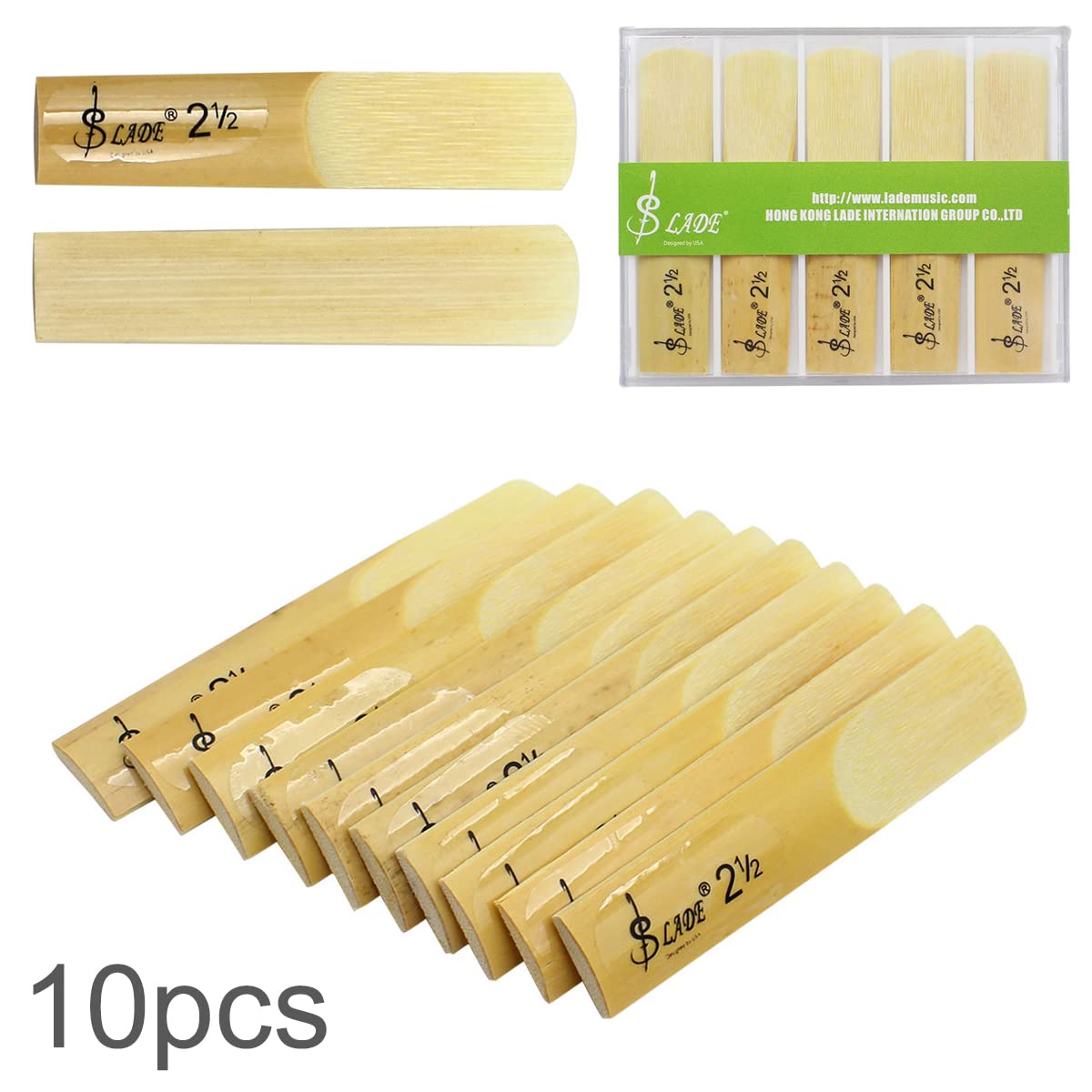 Features: Ten Pieces In One Set, 2.5 In Strength. Made Of High Quality Bamboo. Come Out With A Pretty Good Sound. Suit For Alto Be Saxophone.. Material: Bamboo Quantity: 10 Pieces Package Weight : 40 G 1.41 Ounces Package Dimensions (L*W*H) : 97*78*11 Mm 3.82*3.07*0.43 Inches Package Include: 10 X Reeds