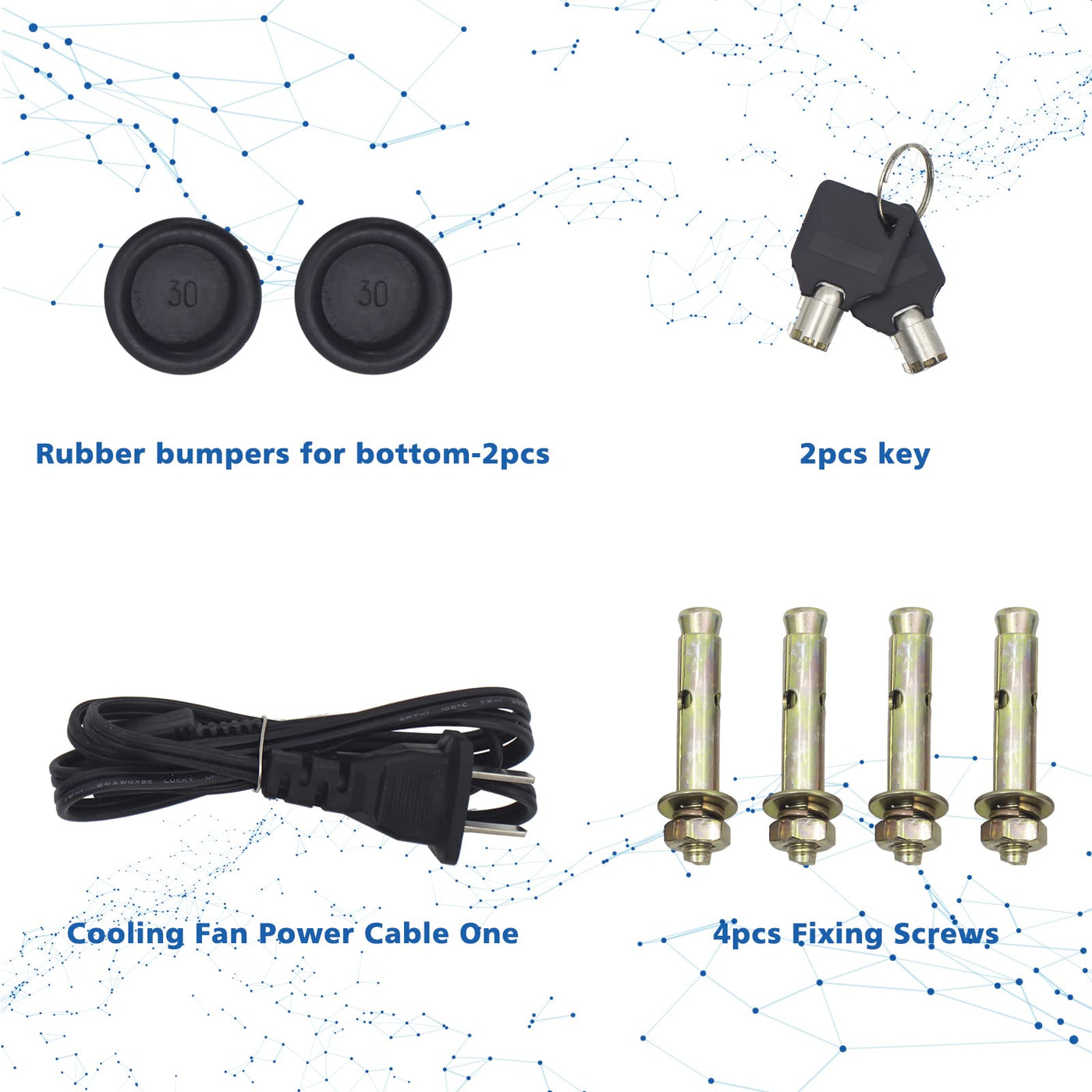 Q: Is there a cooling system included with the lock box?A: Yes, the lock box features a built-in cooling fan to help maintain optimal operating temperatures for the stored equipment, and it comes with a power cord for easy setup.
