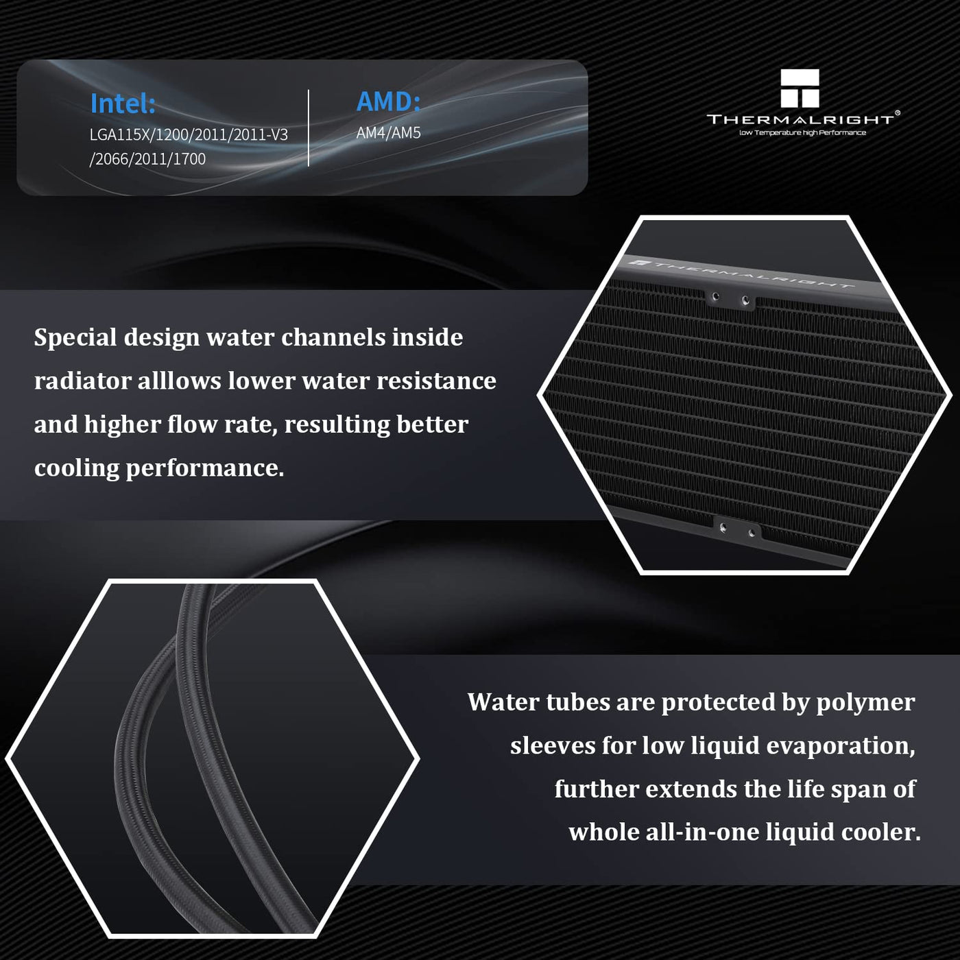 Q: What CPU sockets are compatible with the Thermalright Frozen Prism 240 Black ARGB CPU Liquid Cooler?A: The Thermalright Frozen Prism 240 Black ARGB CPU Liquid Cooler is compatible with a variety of CPU sockets including AMD AM4 and AM5, as well as Intel sockets such as 1150, 1151, 1155, 1156, 1200, 2011, and 2011-V3.