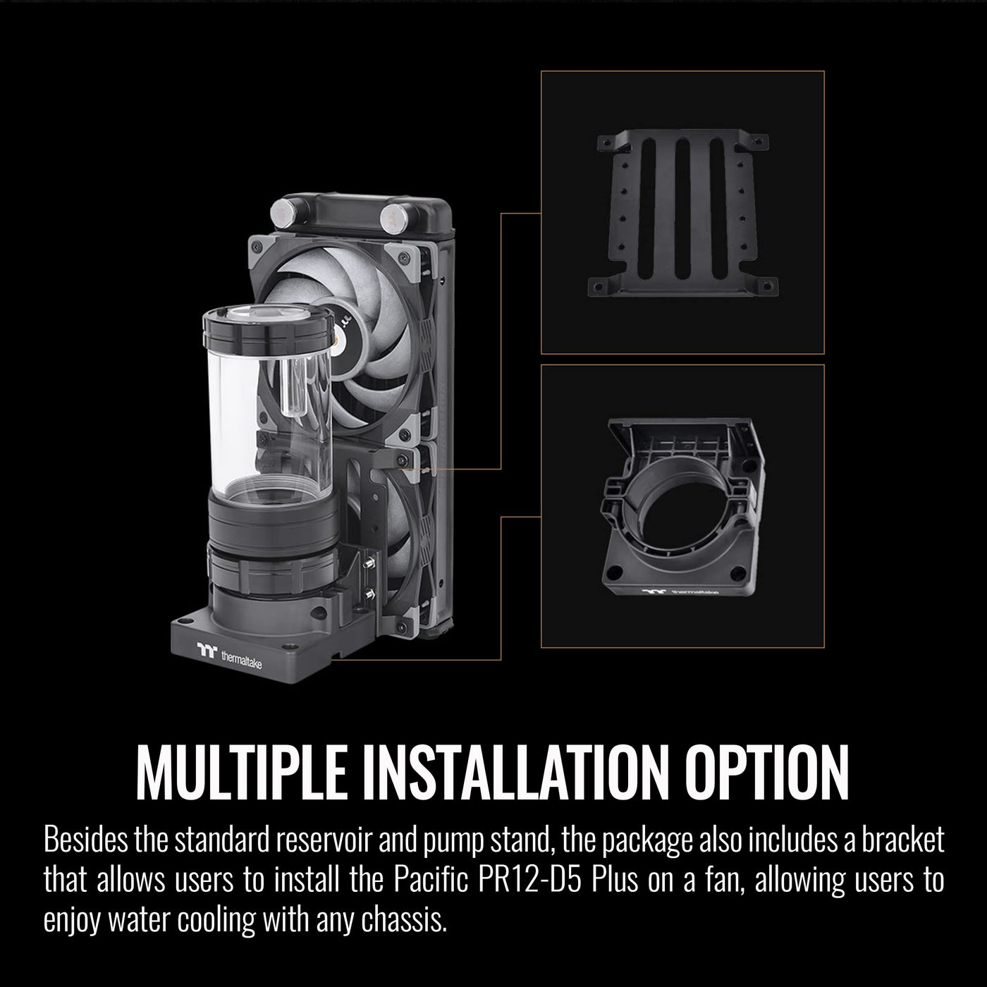 Pacific Pr12-D5 Plus Is A 196.7 Mm Tall Reservoir With A Capacity Of 250Ml; Not Only Is It Suitable For Small Chassis, When Placed In A Large Chassis, It Releases Extra Space For More Diy Styling, Allowing Users To Get Creative With This Product! The Pacific Pr12-D5 Plus Has Newly Designed Mounting Stands That Ensures Further Stability While Holding The 250 Ml Reservoir. The Rotary Cap Design Provides Easy Water Loop Options, And Shining Through The Rotary Cap Is 12 Addressable Leds Allowing Users To Experience Numerous Lighting Effects And 16.8 Million Color Combinations Through The Tt Rgb Plus Software. P/N: Cl-W338-Pl00Sw-A Dimensions: 79 (L) X 79 (W) X 196.7 (H) Interface: Usb 2.0 Connectors(9 Pin) System Compatibility: Windows 7 / 8 / 8.1 / 10 Fan Rated Voltage: 1135 L/H Power Input: 37 W / 6.5 W Connector: 4 Pin Pump Speed: P1: 1,800 Rpm, P2: 2,550 Rpm, P3: 3,300 Rpm, P4: 4,050 Rpm, P5: 4,800 Rpm Material: Al + Pom + Pmma Capacity: 250 Ml Maximum Head: 15 Feet (4.5M) Maximum Flow Rate: 1135 L/H Maximum Pressure: 50 Psi Input Voltage: 12 V / 5 V Parts: 1. Stopper *1 (G 1/4 ) 2. Bracket *1 3. Clip *1 Screw Thread: G 1/4