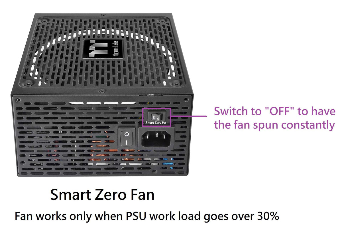 Q: What cooling system does the Toughpower GF1 use?A: The Toughpower GF1 features a 140mm hydraulic bearing fan that offers superior cooling performance while maintaining near-silent operation, thanks to its Smart Zero Fan technology, which automatically regulates fan speed based on power consumption.