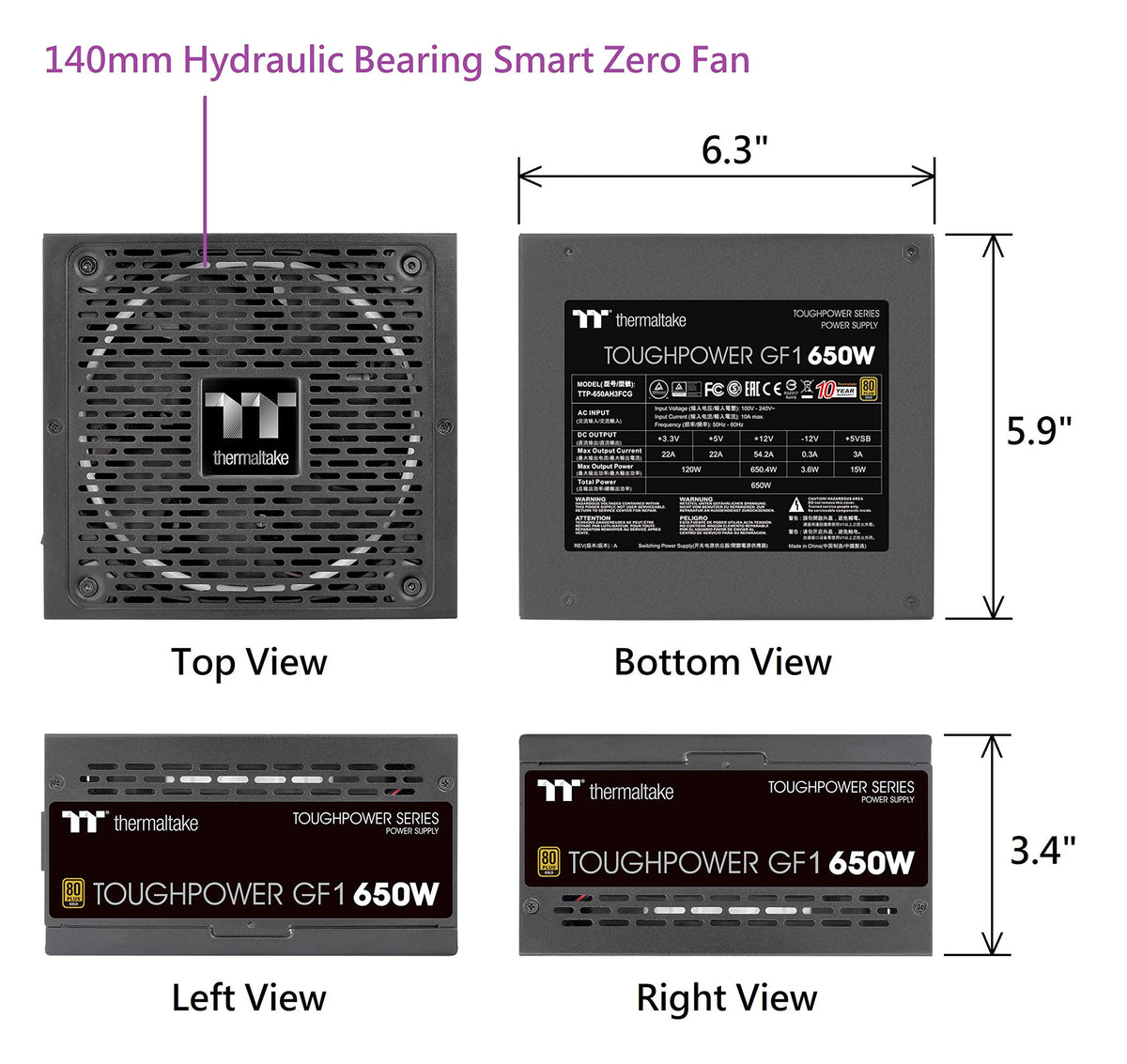 Designed With A Native Pcie 12+4Pin Connector, The Toughpower Gf3 Series Is Compatible With Intel As Atx 30 Specification And Is Built For Next-Gen Pcie 50 Graphics Cards Capable Of Delivering Up To 600W Of Power To Pcie 50 Graphics Cards Apn: Ps-Tpd-0750Fnfagu-4 Awatts: 750W Amodel: Tpd-0750Ah3Fcg Amax Output Capacity: 750W Acolor: Black Adimension ( W H D ): 150Mm(W) X 86Mm(H) X 160Mm(D) Aweight: 163 Kg Apfc (Power Factor Correction): Active Pfc Apower Good Signal: 100-150 Msec Ahold Up Time: > 17Msec At 100% Of Full Load Ainput Current: 100A 50A Ainput Frequency Range: 5060Hz Ainput Voltage: 100V - 240V Aoperating Temperature: 0Ac To + 40Ac Aoperating Humidity: 20% To 90%,Non-Condensing Astorage Temperature: -20Ac To + 70Ac Astorage Humidity: 5% To 95%, Non-Condensing Acooling System: 135Cm Fluid Bearing Fan Aefficiency: Meet 80 Plusagold At 115Vac Input Amtbf: 100,000 Hrs Minimum Asafety Approval: Ceukcactuvustavfccicbsmieaccbccc Apci-E 6+2Pin: Pcie 6+2Pin X 4, Pcie 12+4Pin X 1 Aprotection: Ocp, Ovp, Uvp, Opp, Scp, Otp