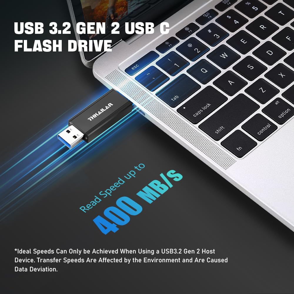 Thkailar Usb C Flash Drive 256Gb High Speed Up To 400Mb/S Read 2 In 1 Usb 3.2 Gen2, Usb C Thumb Drive Compatible With Android Ph