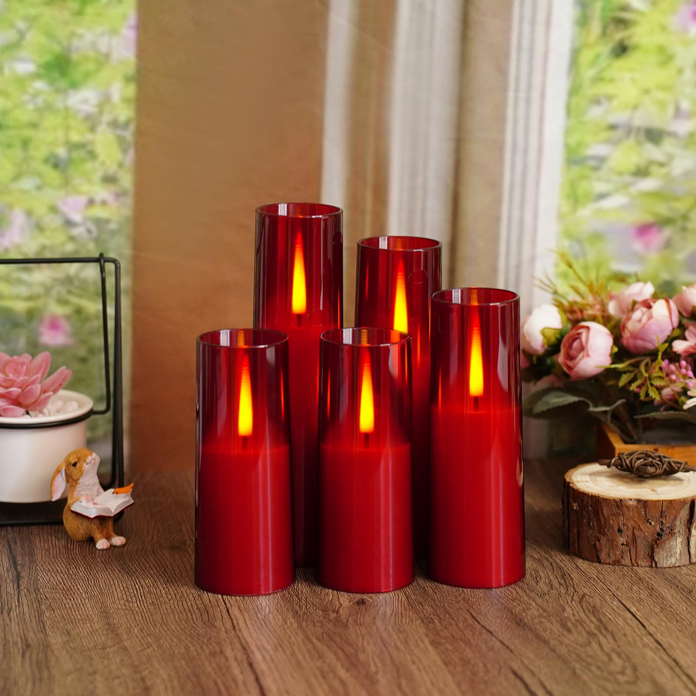 Thorbling Flameless Led Candles, Upgraded Realistic 5 Pcs Flickering Flame Pillar Candles, Battery Operated Candles With Remote Timer, For Romantic Ambiance And Home Decoration (Red)