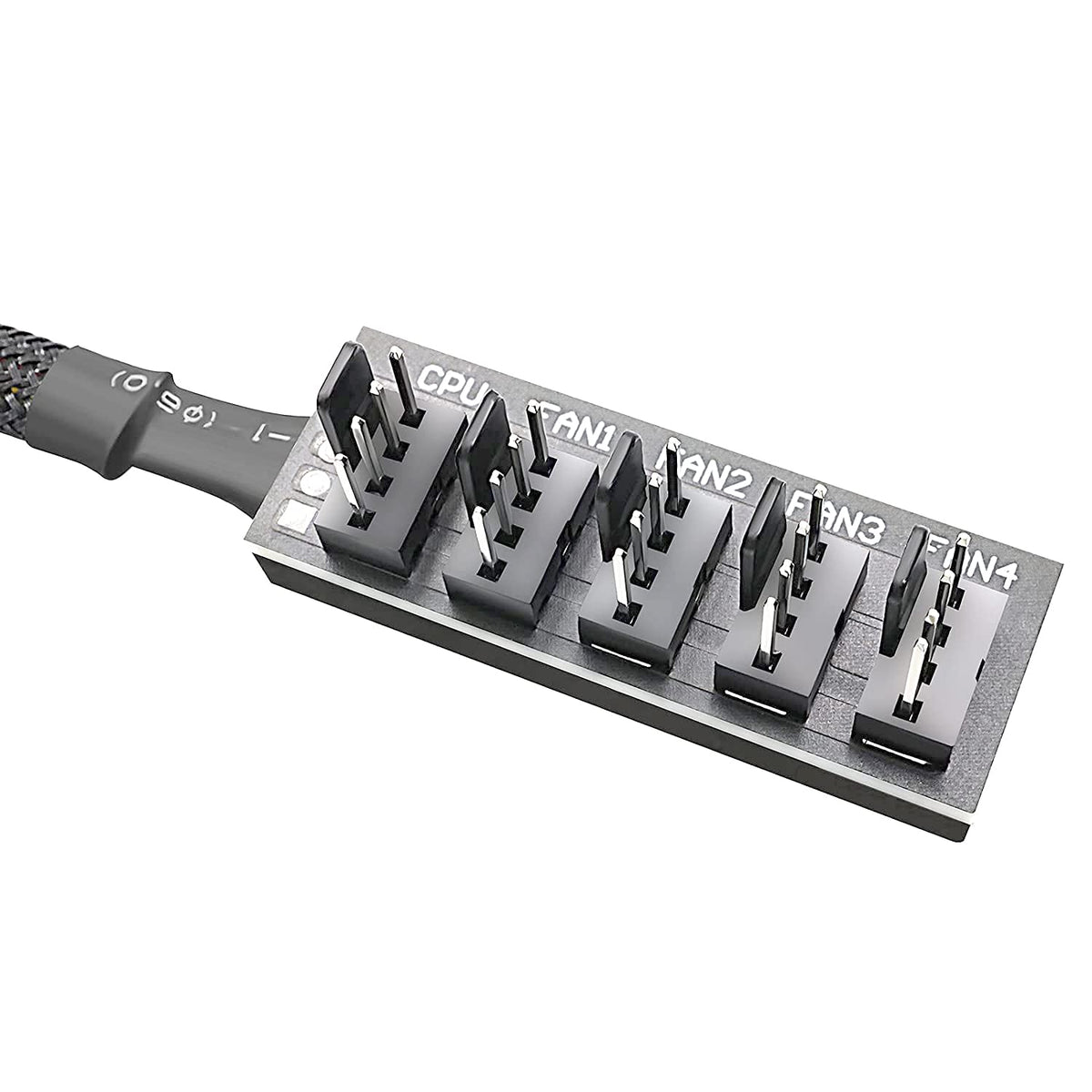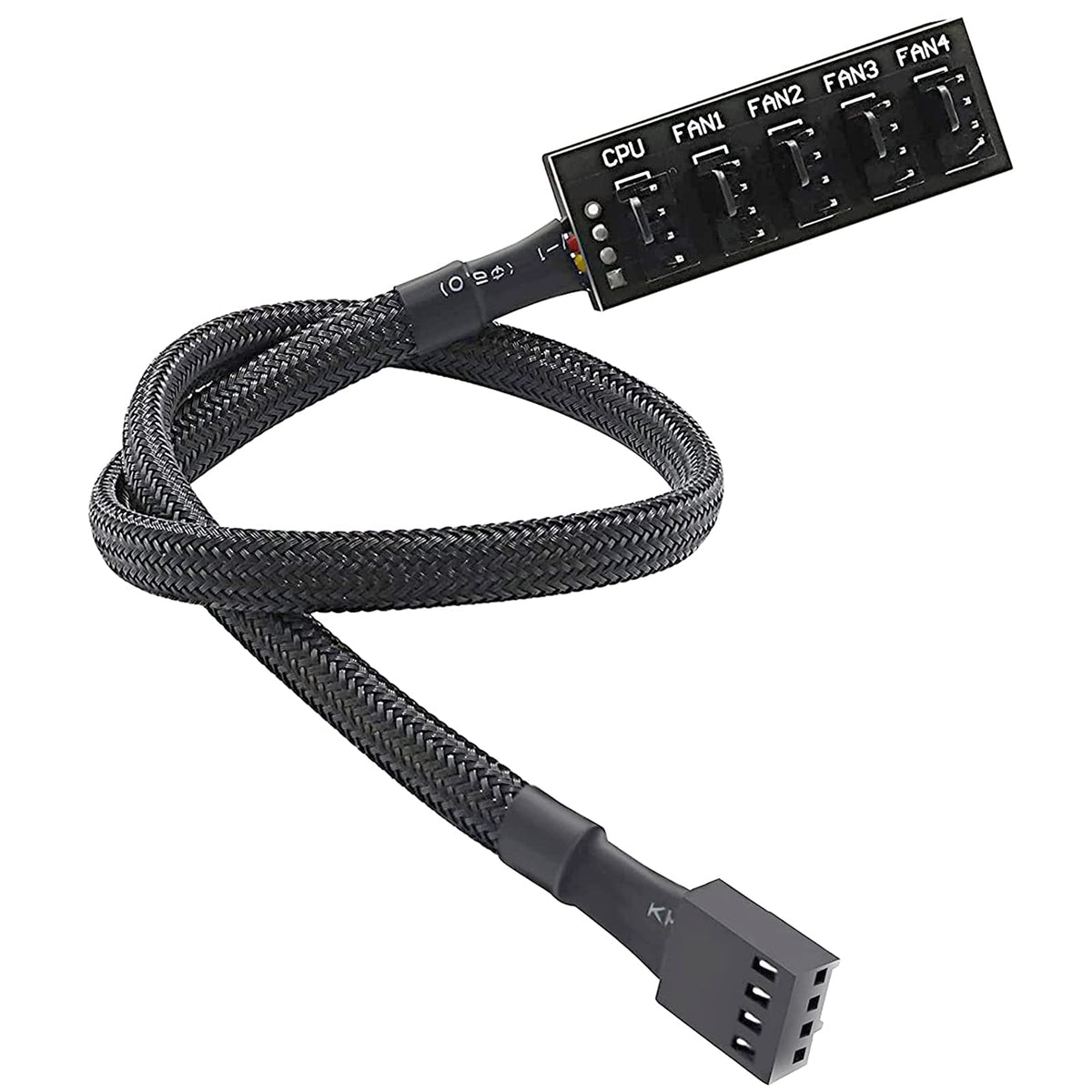 Threebulls Pwm Fan Hub, Pc Cpu Cooling 4 Pin/3Pin Power Fan Extension Cable Hub Splitter Adapter Sleeved Case For 12V Desktop Computer Cooler Fans 1 To 5 Way (15.7 Inch)